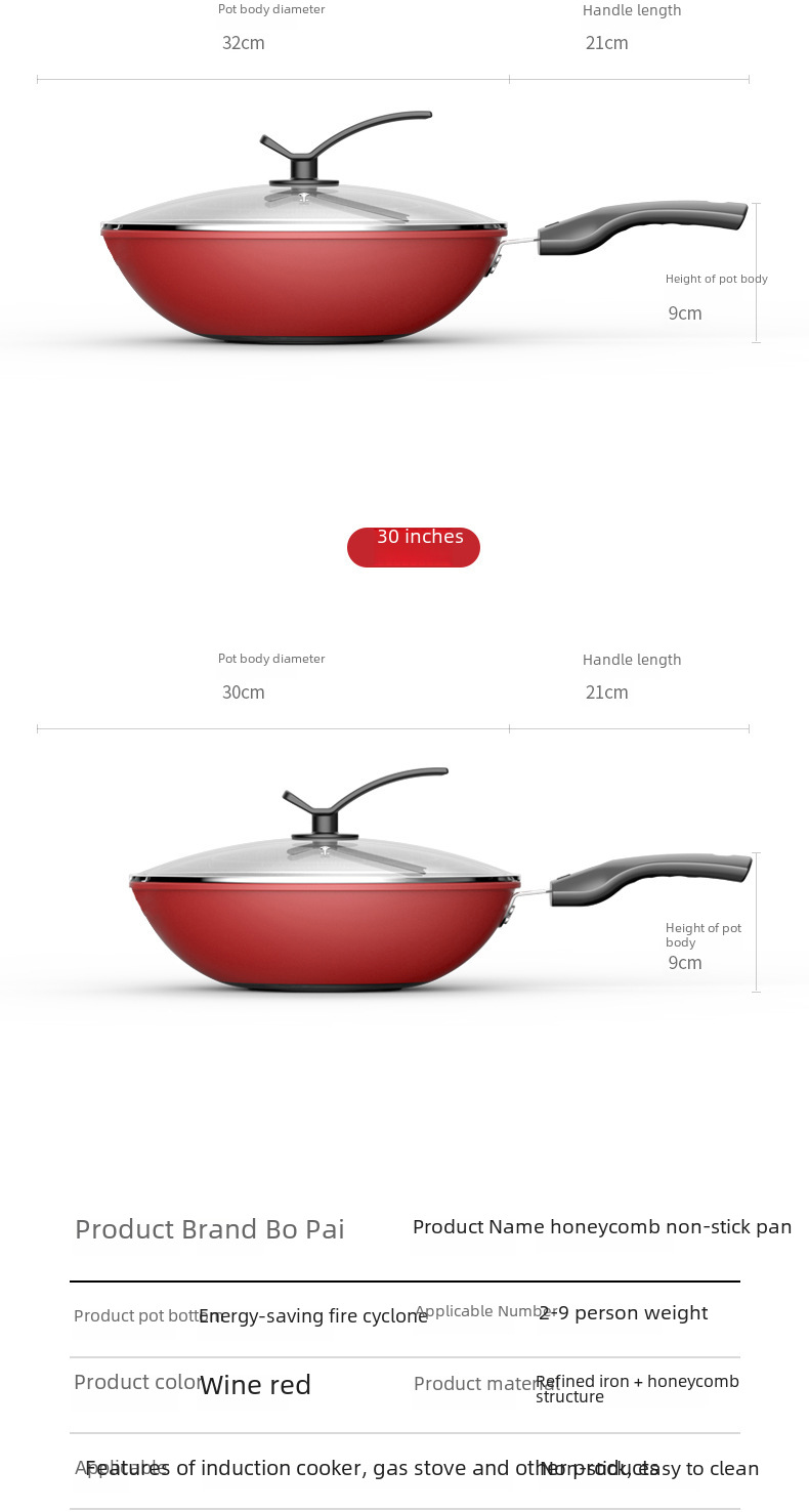 Factory wholesale full size honeycomb non stick pan frying pan iron pan household frying pan gift pots