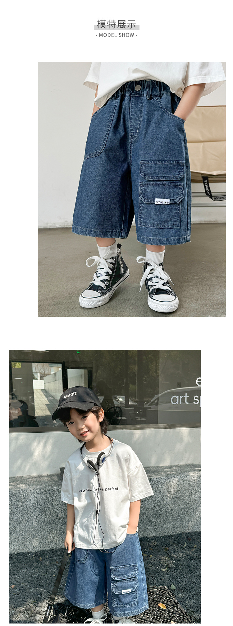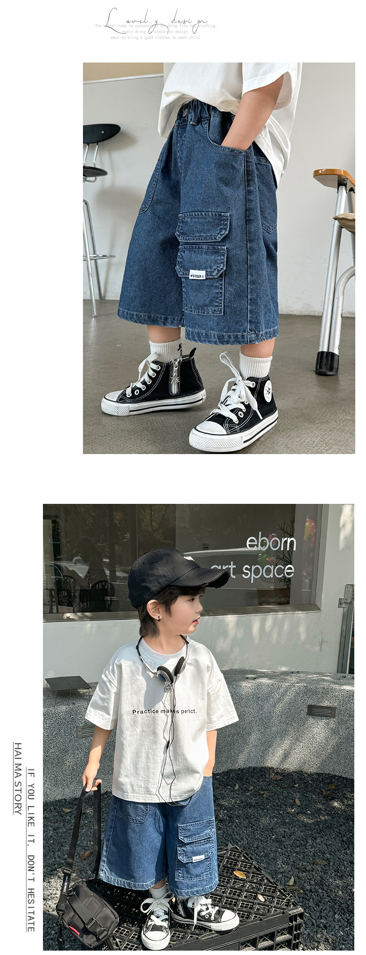 Haima s 4.1 Summer New Product Phase II Boys Tooling Big Pocket Denim Shorts Fashionable Wash