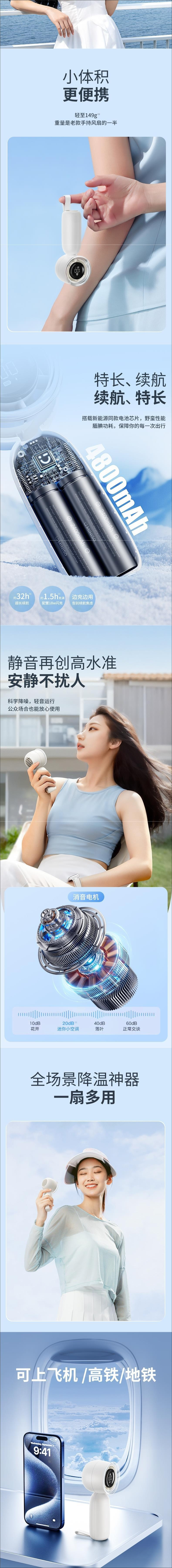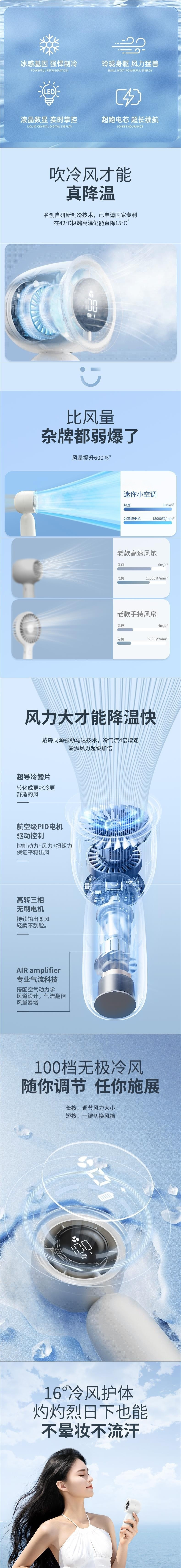 - [Glacier White] 16°C Ice Cold Wind❄100 gear infinite adjustment❄Charge once for 4 days