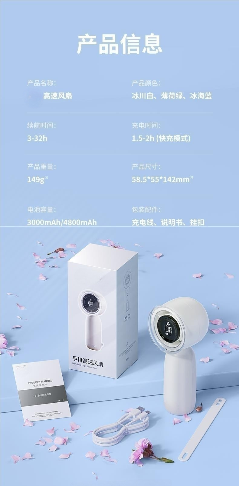 - [Cloud Ice White] 100 Surging Cold Air ◆ LED LCD Digital Display ◆ Charge once for 4 days