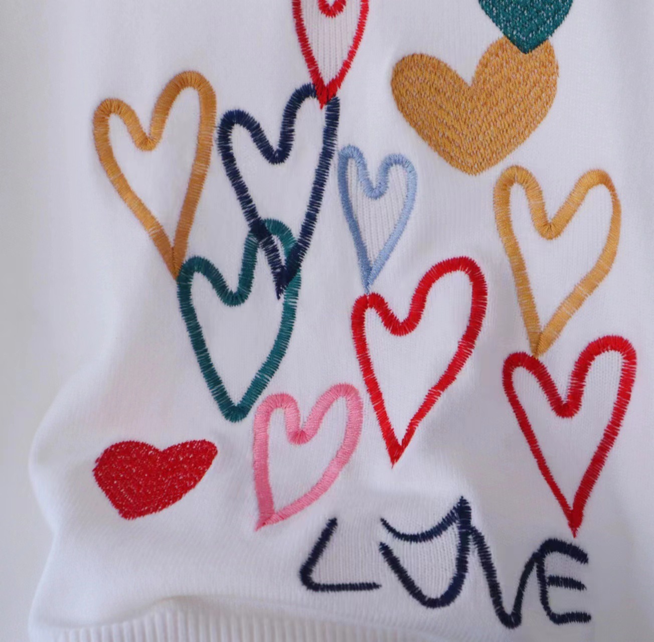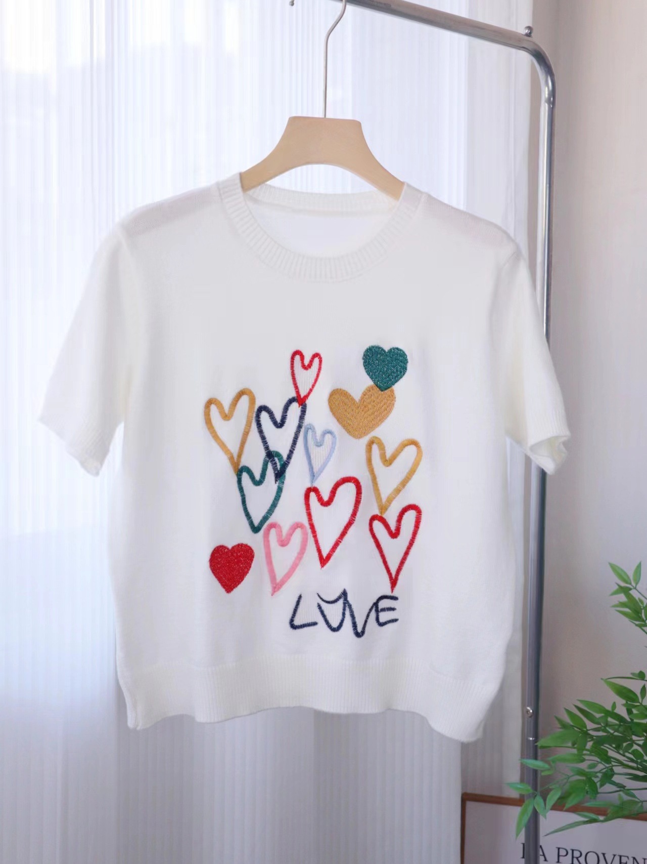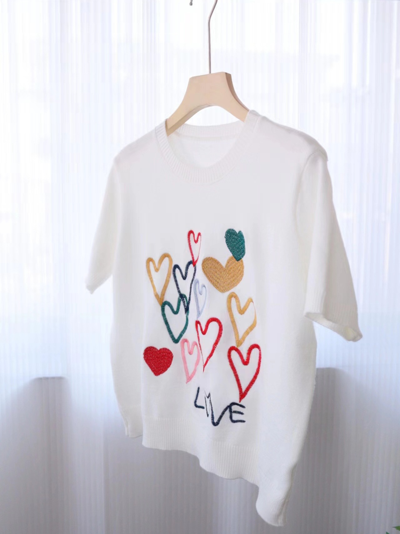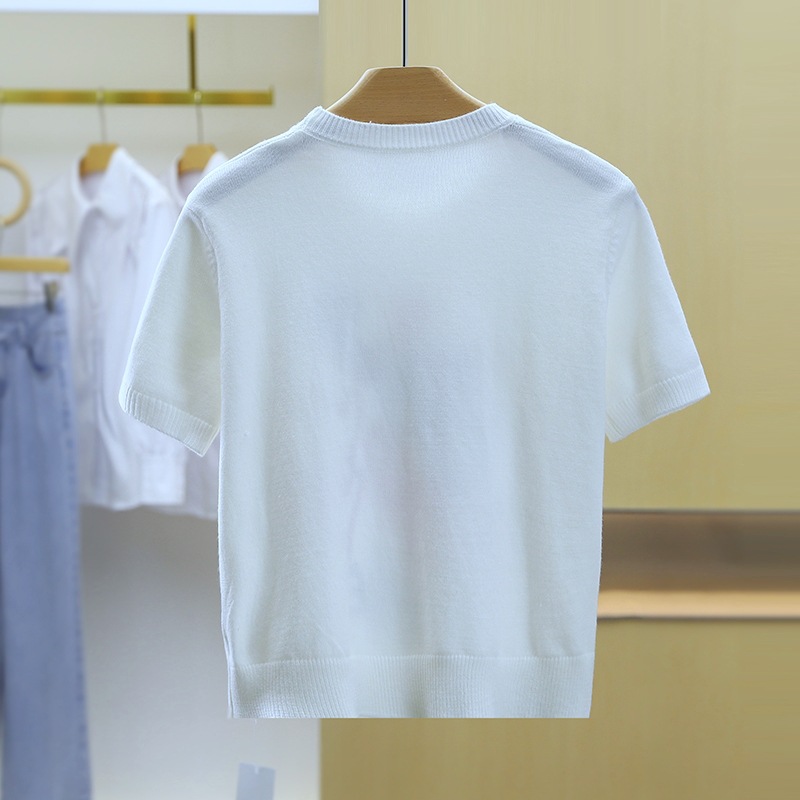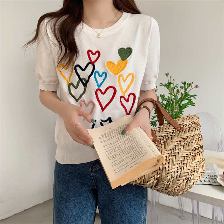 Spring Clearance 50 Discount Spring and Autumn Love Embroidered Short sleeved Knitted Sweater for Women 24 New Round Neck Design Sense Interior