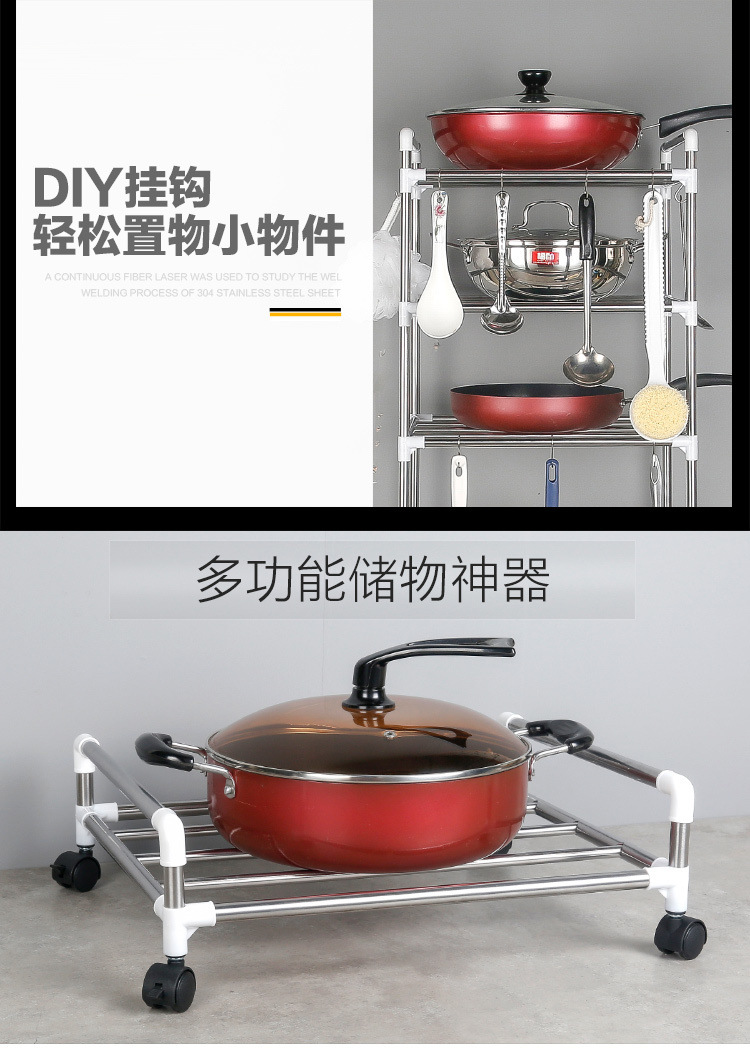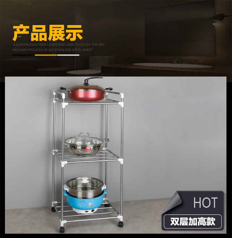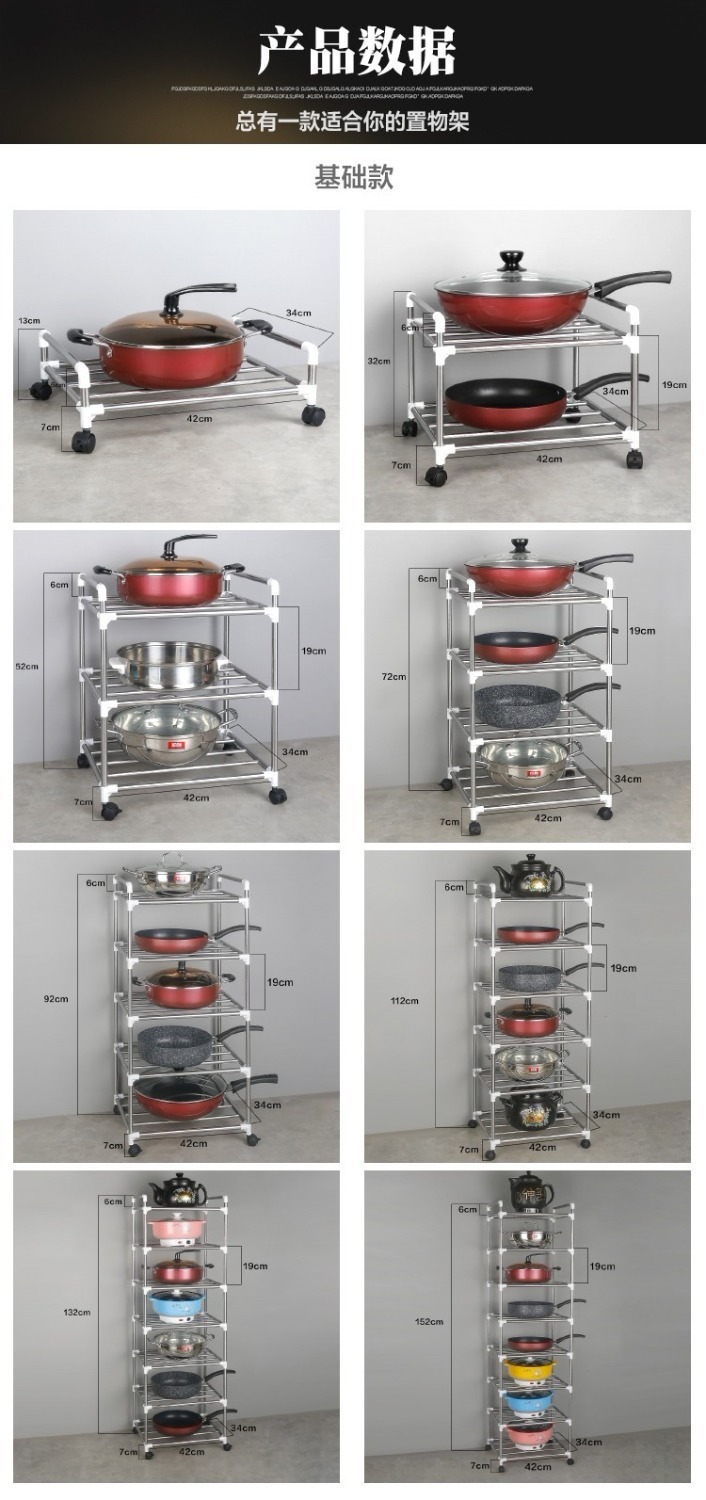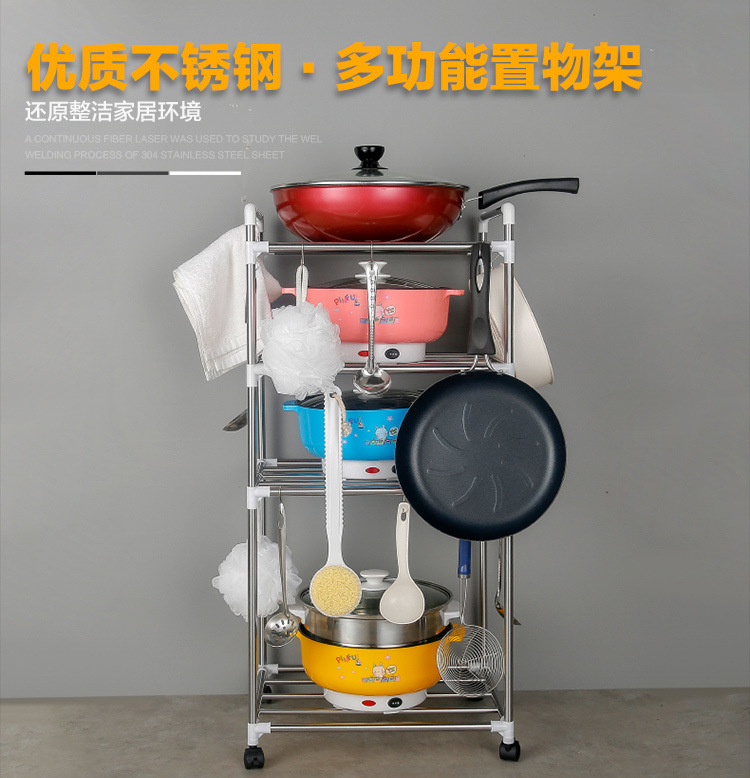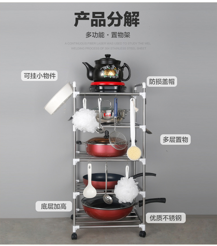 [With pulley] thickened stainless steel multi-layer storage rack kitchen storage rack multi-functional floor pot rack