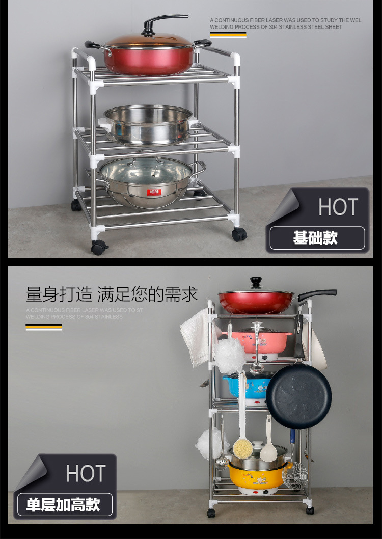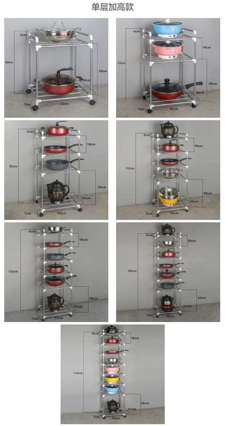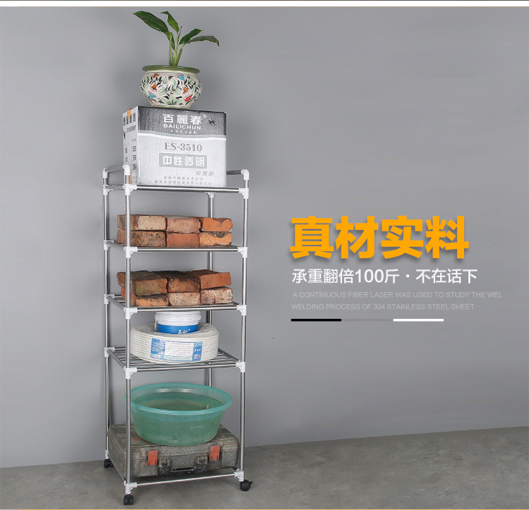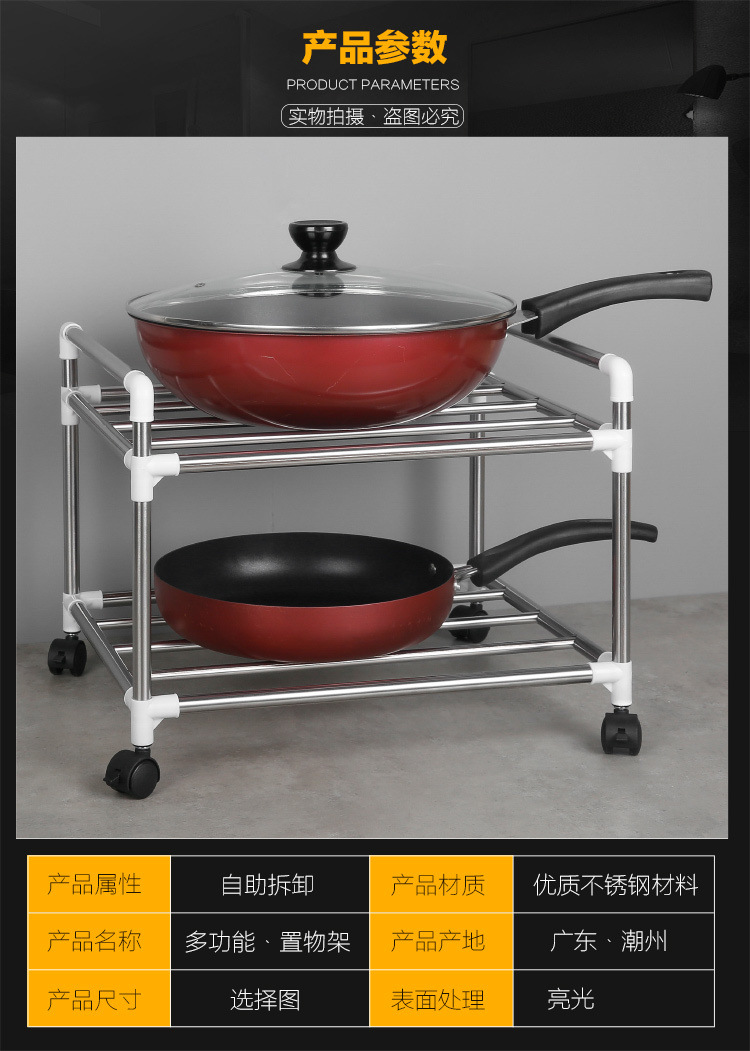[With pulley] thickened stainless steel multi-layer storage rack kitchen storage rack multi-functional floor pot rack