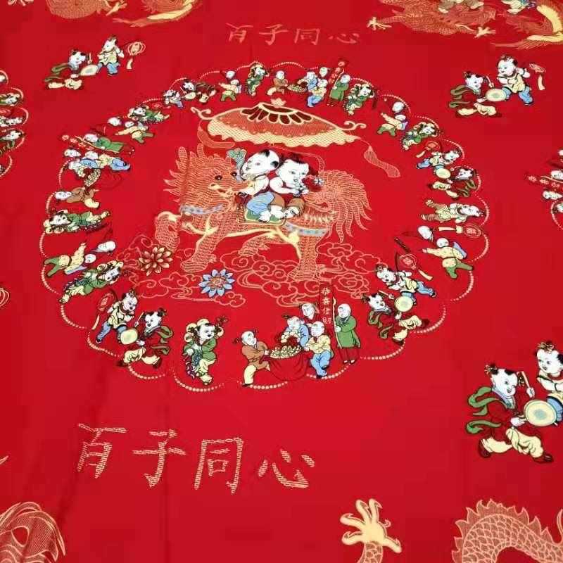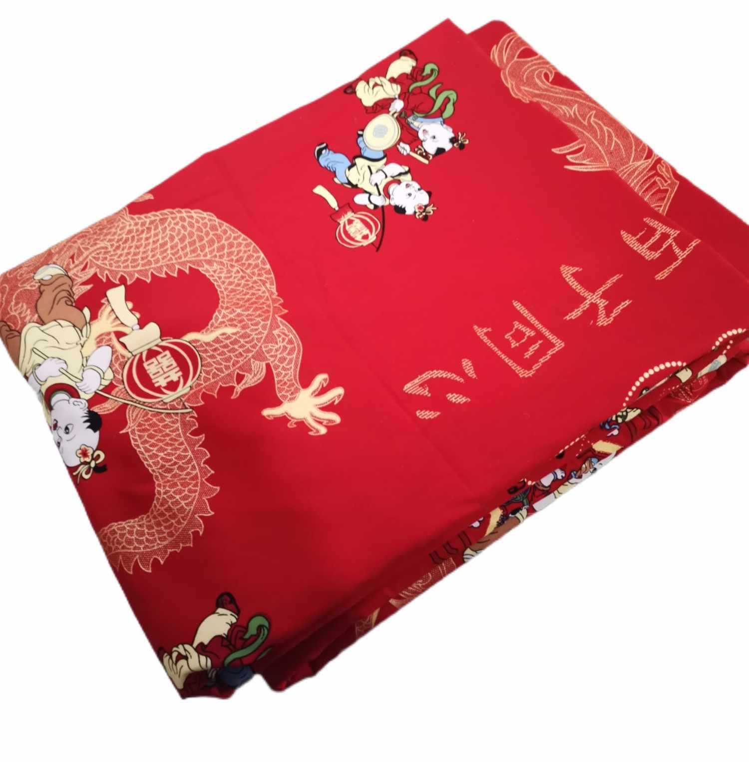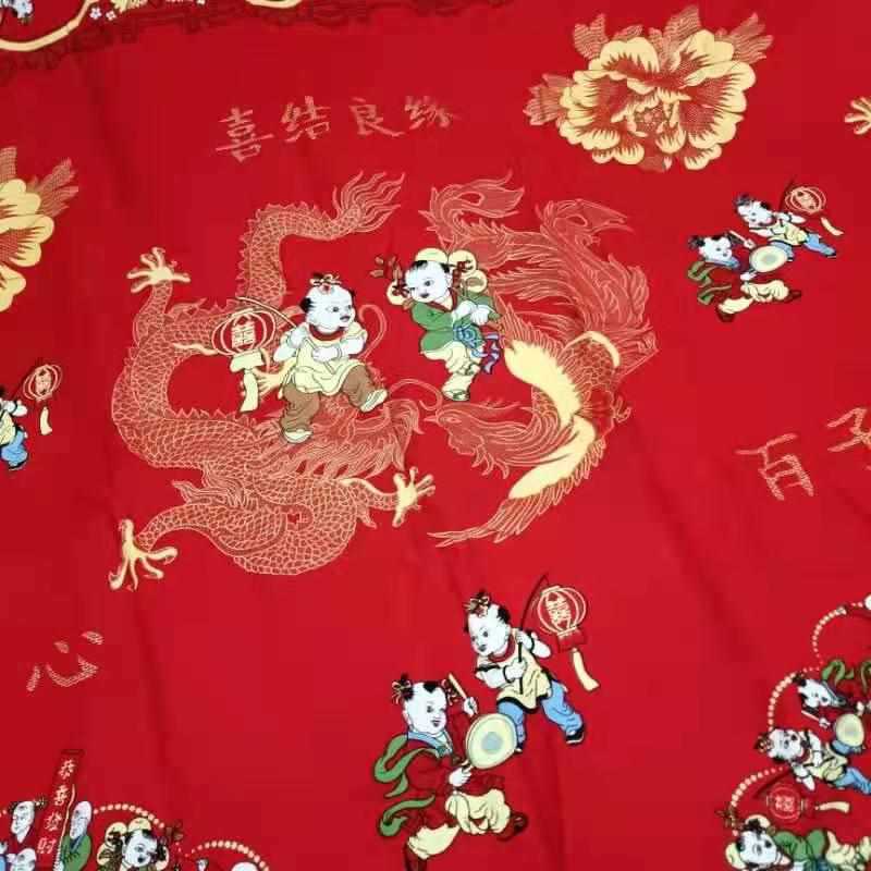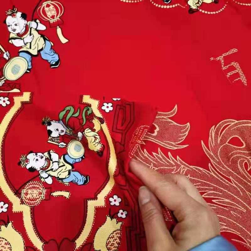 0FE9 dragon and phoenix Baizi picture quilt cover fabric pillowcase Chinese knot wedding Baizi four-piece red bed sheet