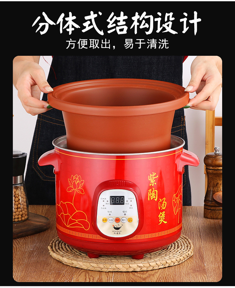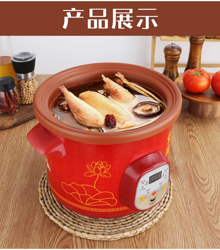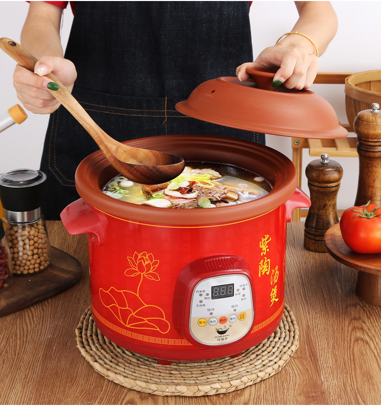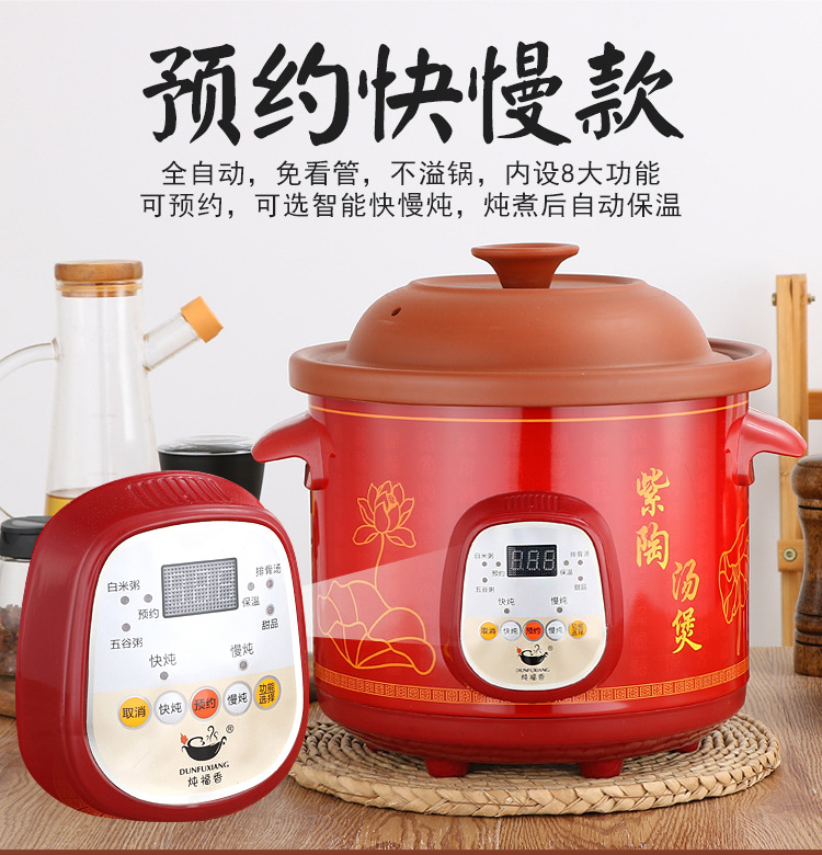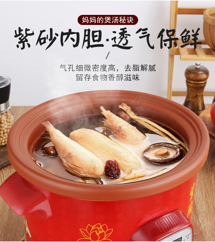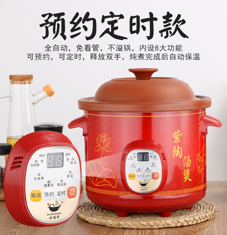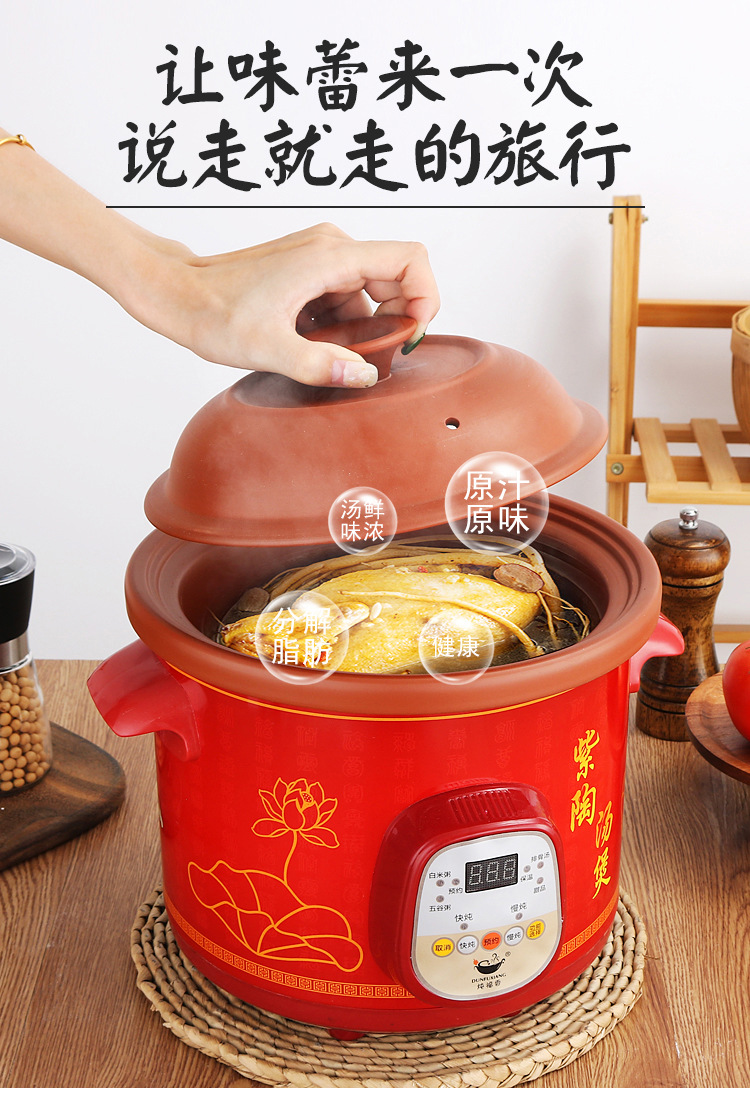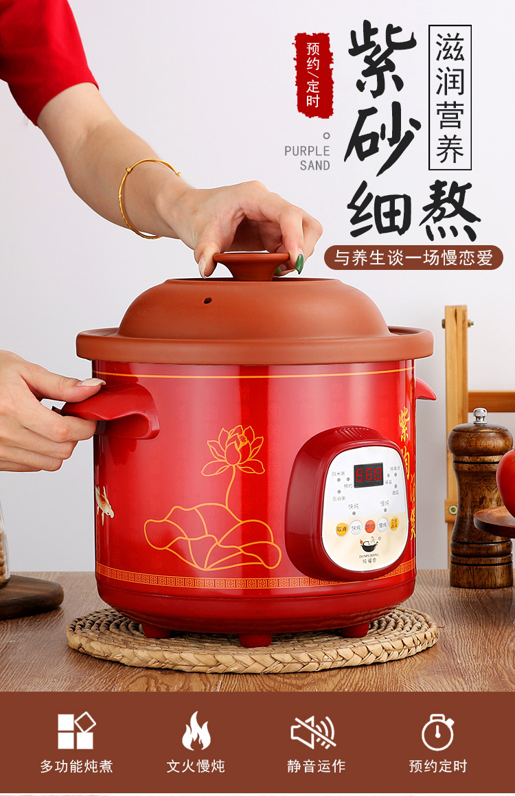 1.5 6L Automatic Purple Sand White Porcelain Electric Stew Pot Household Soup Porridge Artifact BB Porridge Supplementary Food Pot Health Casserole