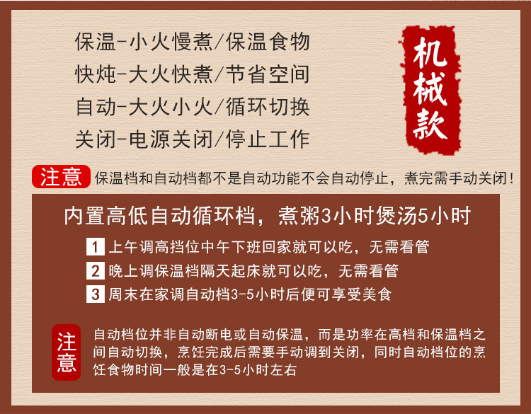 - 4.5L Fast and Slow Stew Appointment Automatic Heat Preservation (Suitable for 4-5)