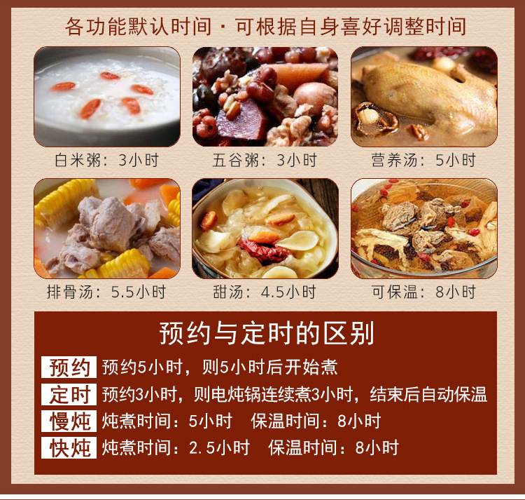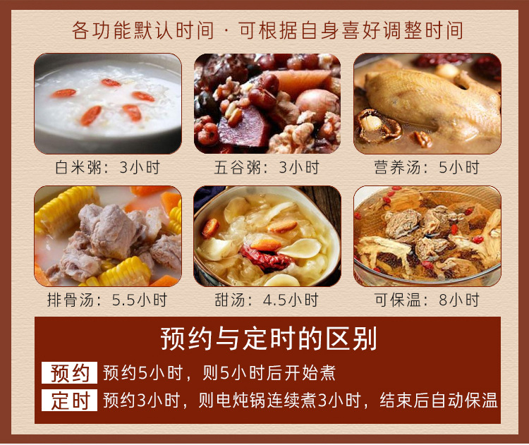 - 6.L fast and slow stew reservation automatic heat preservation (suitable for 5-8 people)