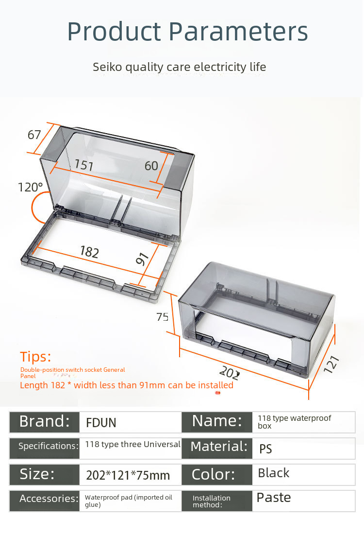 118 type heightening socket waterproof cover adhesive toilet leakage switch splash proof box water heater protection leakage cover