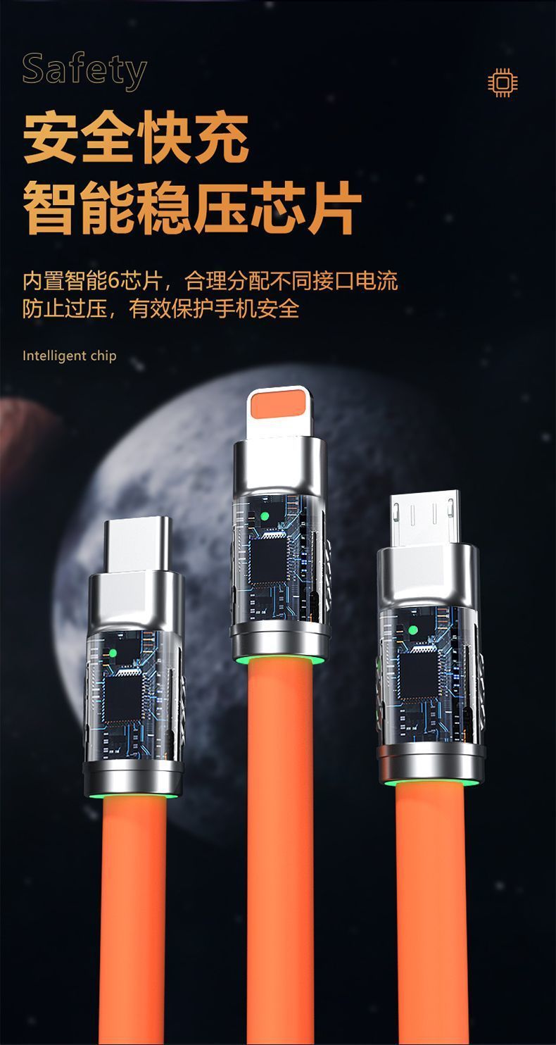 120W geek zinc alloy one drag three fast charging data line Android TYPE-C three-in-one mobile phone charging line
