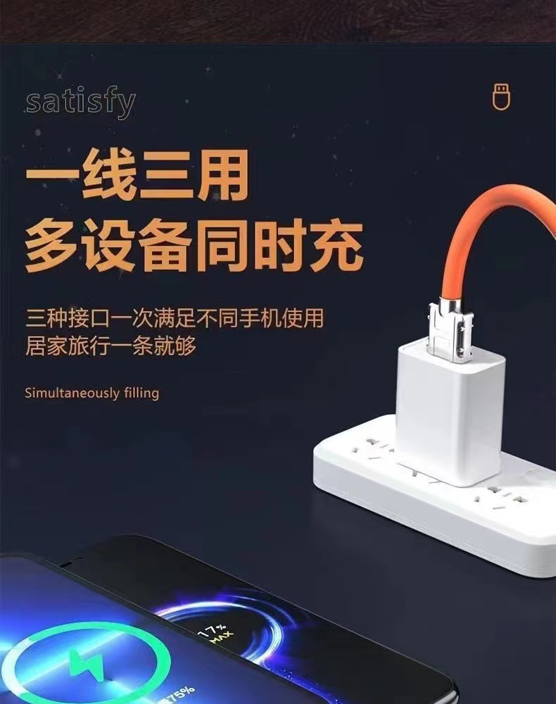 - 1.2 m one drag three super fast charge 120W(5.0 thick)
