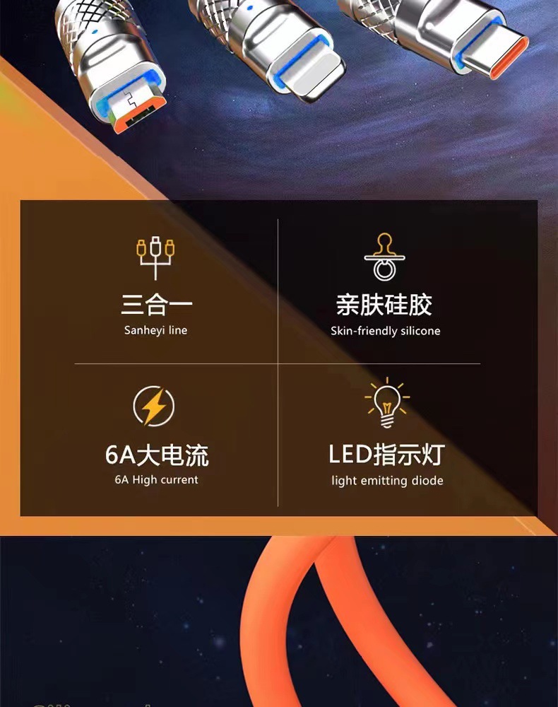 - 1.2 m one drag three super fast charge 120W(5.5 bold)