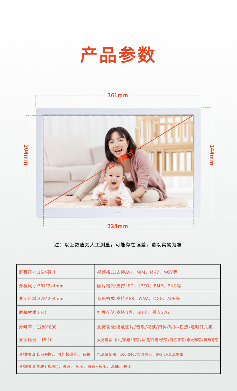 15.4 inch HD digital photo frame automatically plays video pictures 1280 800 household multi functional electronic photo album