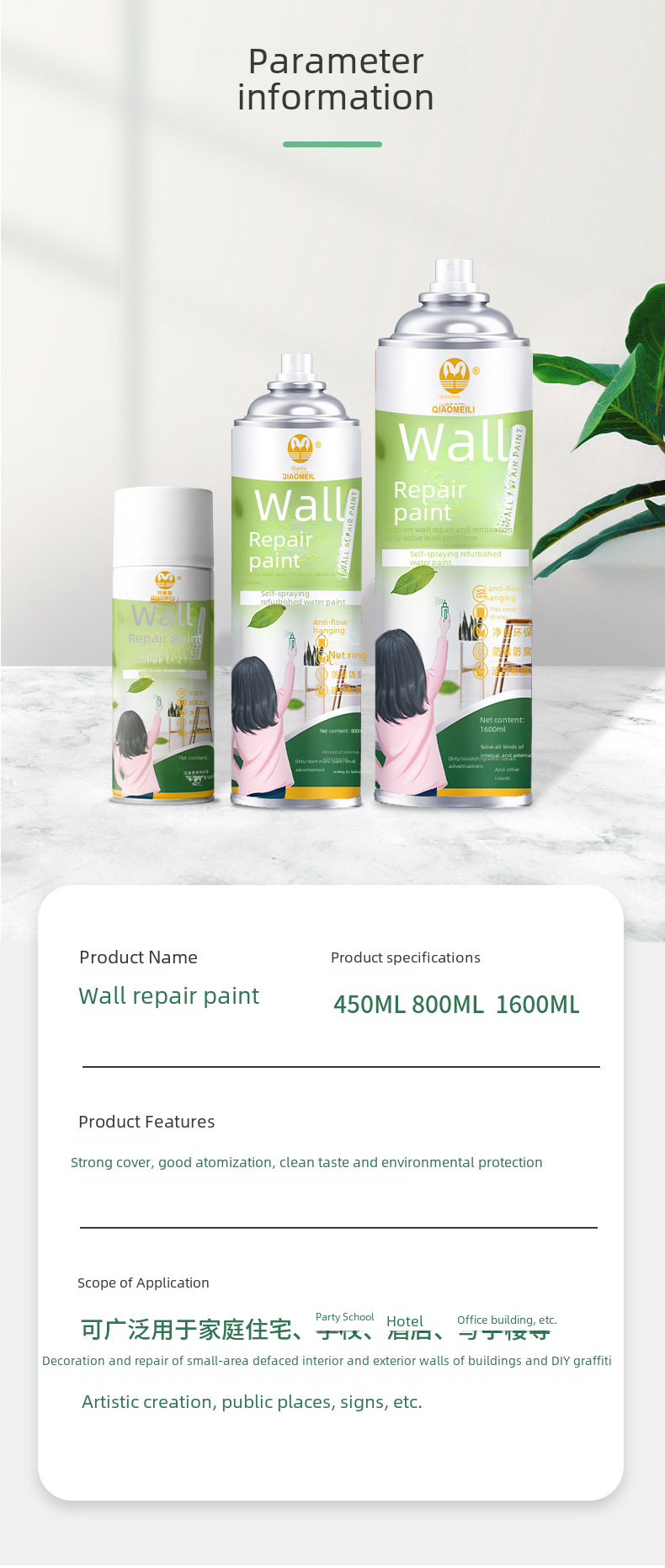 - New upgrade 1600ml binary wall repair paint French A + Certification
