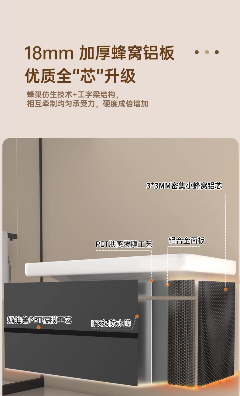 18mm thickened honeycomb aluminum bathroom cabinet ceramic integrated basin bathroom wash basin lengthened one meter two wash basin