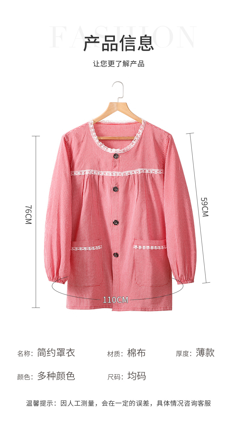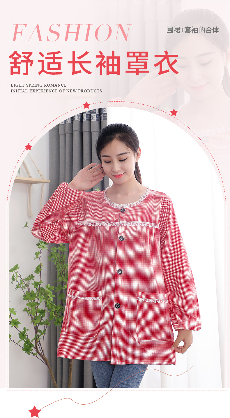 1E31 New Cotton Apron Overalls Women s Home Work Wear Long Sleeve Buckle Wear Work Clothes Small