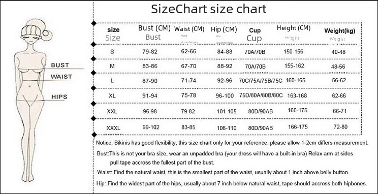 Suitable for All Body Types:With its flattering cut and fit, this bikini suits all body types. It's designed to enhance your figure while you enjoy your time at the beach.