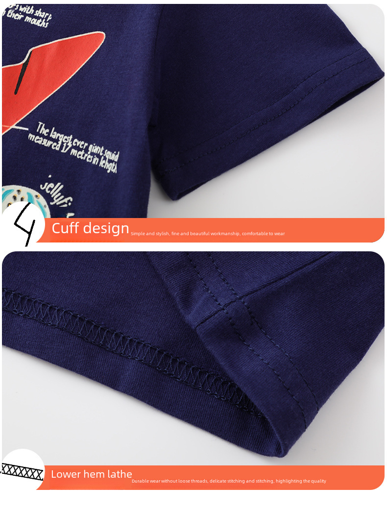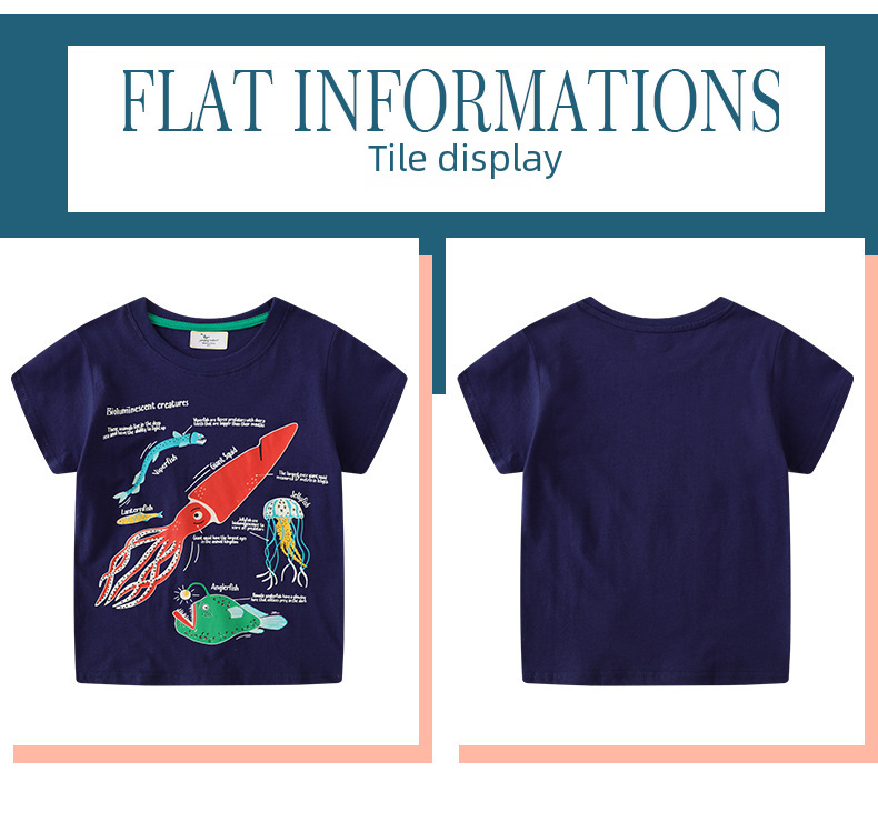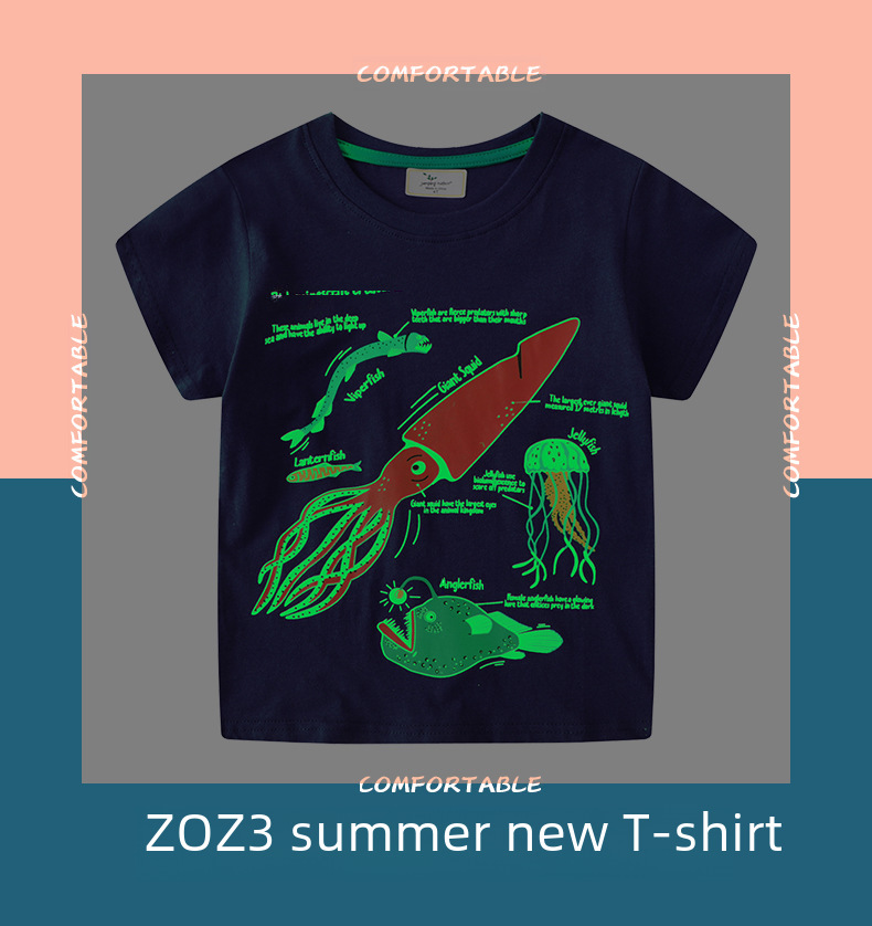 2022 New Listing Underwater World Luminous Pattern Boys Top European and American Style Children s T shirt