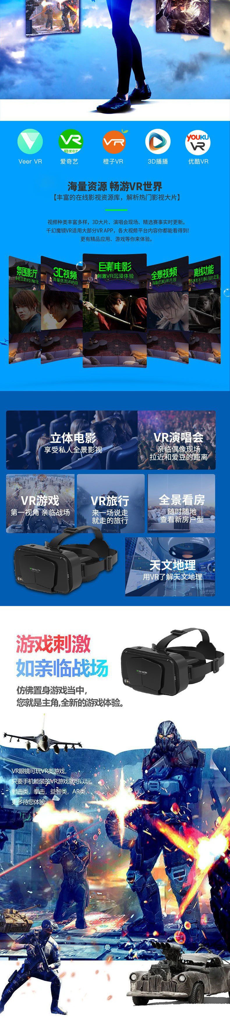 2022 New Year VR Glasses Virtual Reality Glasses Head mounted Game Mobile Phone Body Sense Cinema Postage