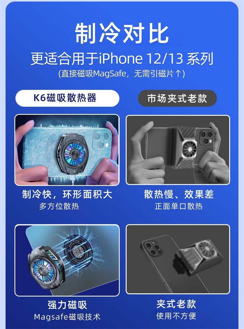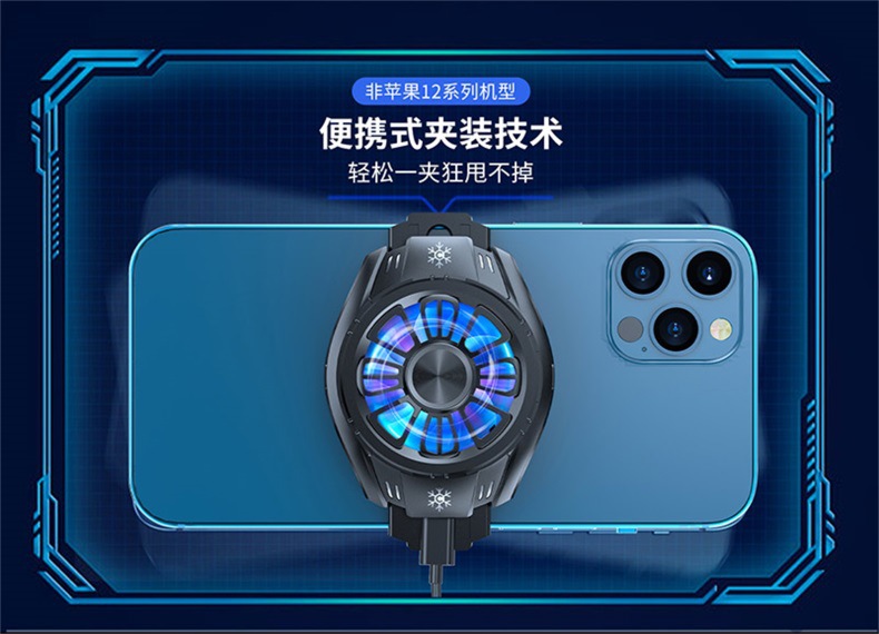 使用说明:1,将半导体手机制冷支架夹在手机背部,先将一边勾住手机一侧,在拉动伸缩夹臂勾住手机另一侧完成夹附。
