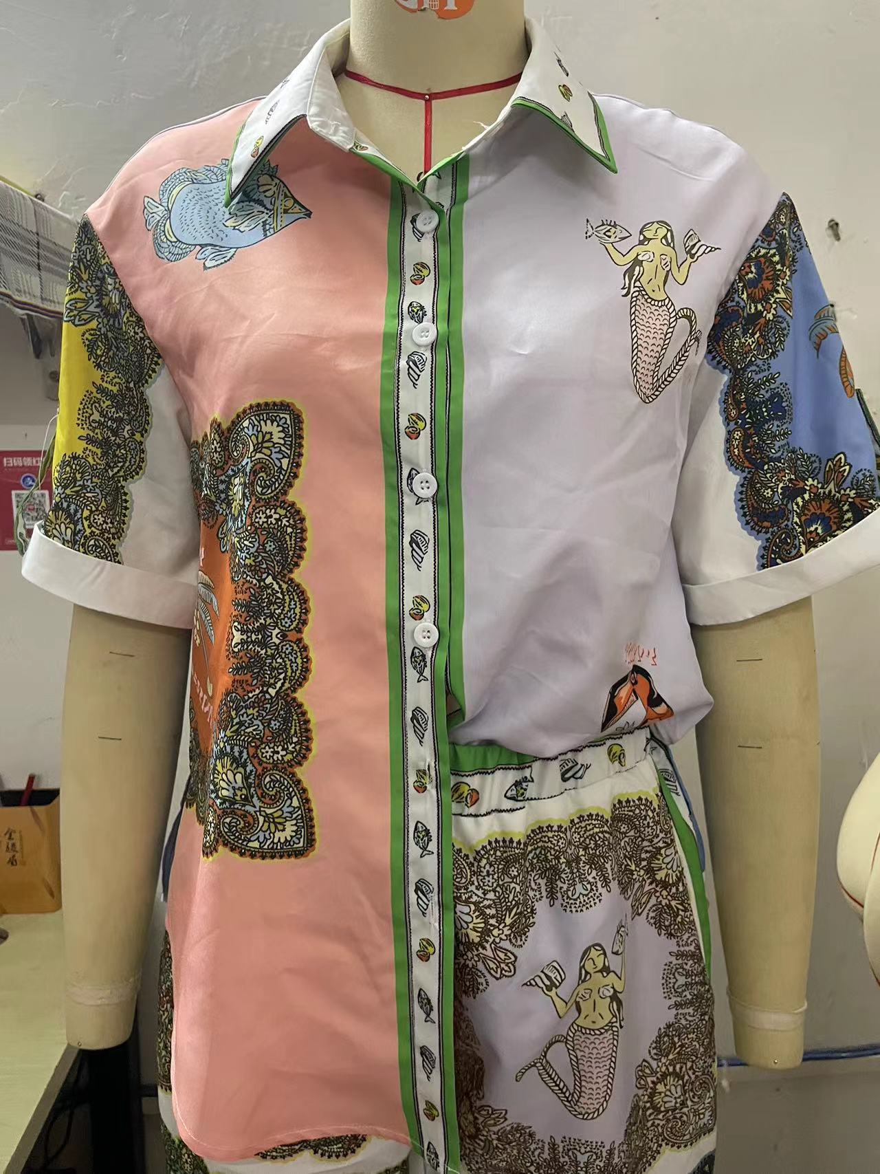 2023 European and American Casual Fashion Cotton Linen Shirt Short sleeved Suit Summer Fresh Three sleeved Shirt Two piece Suit