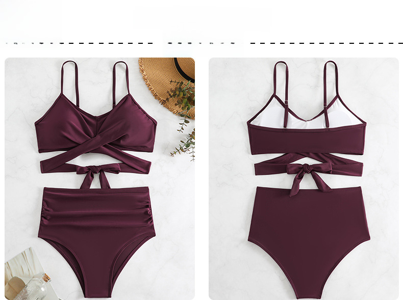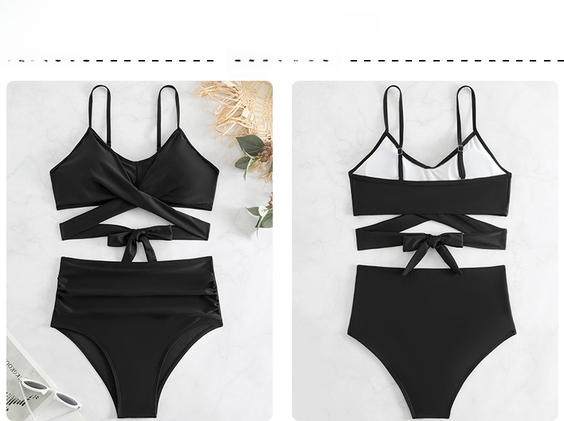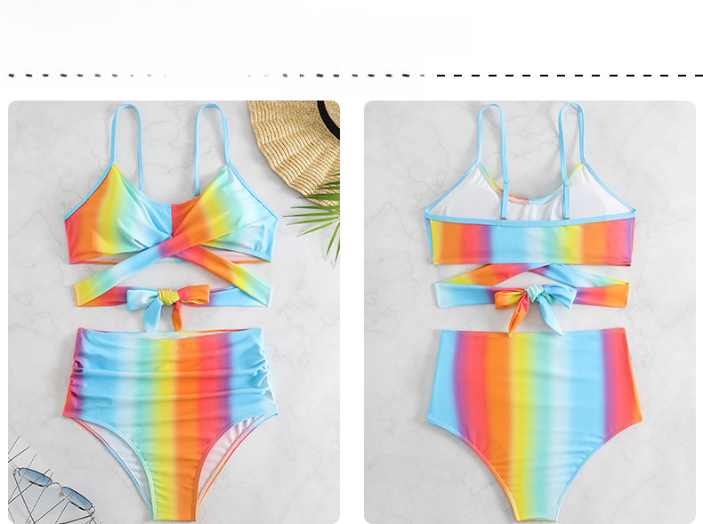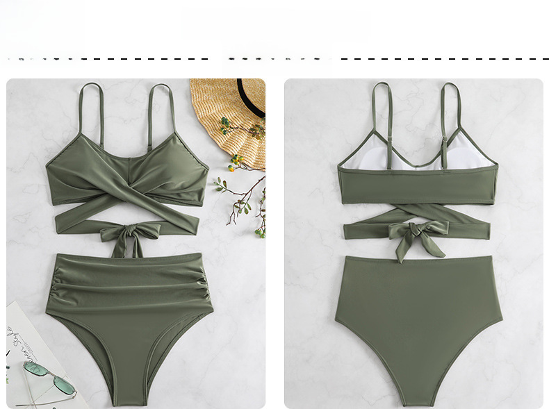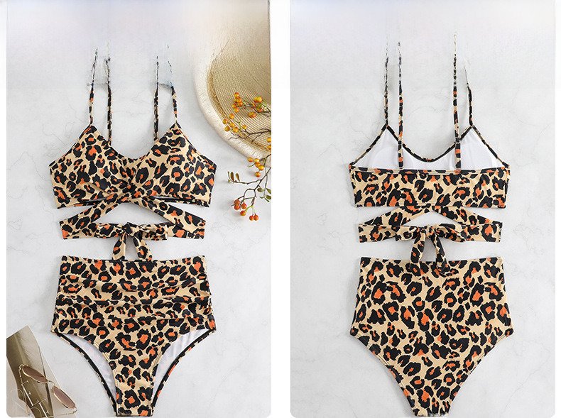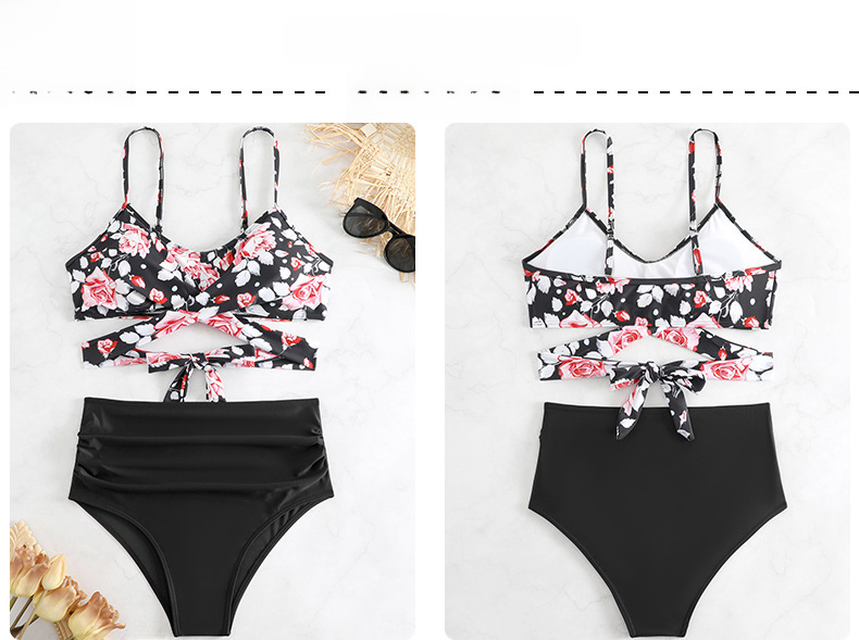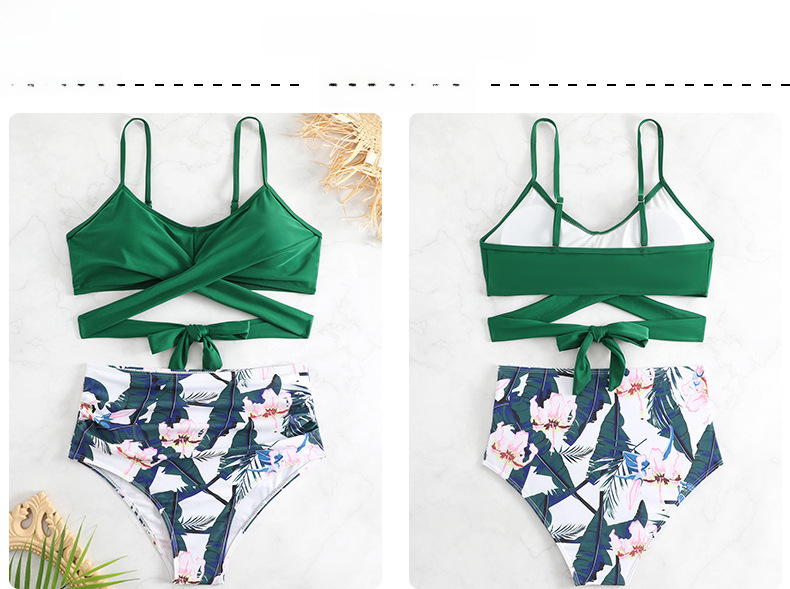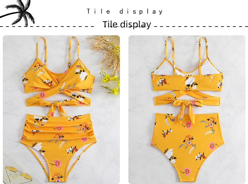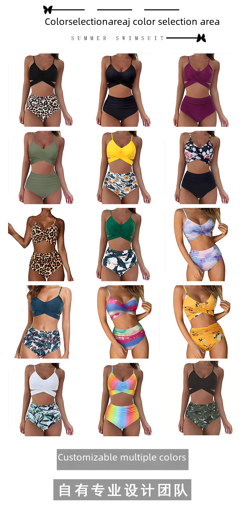 2023 European and American Swimwear New High Waist Split Women Sexy High Waist Cross Backless Printed bikini bikini