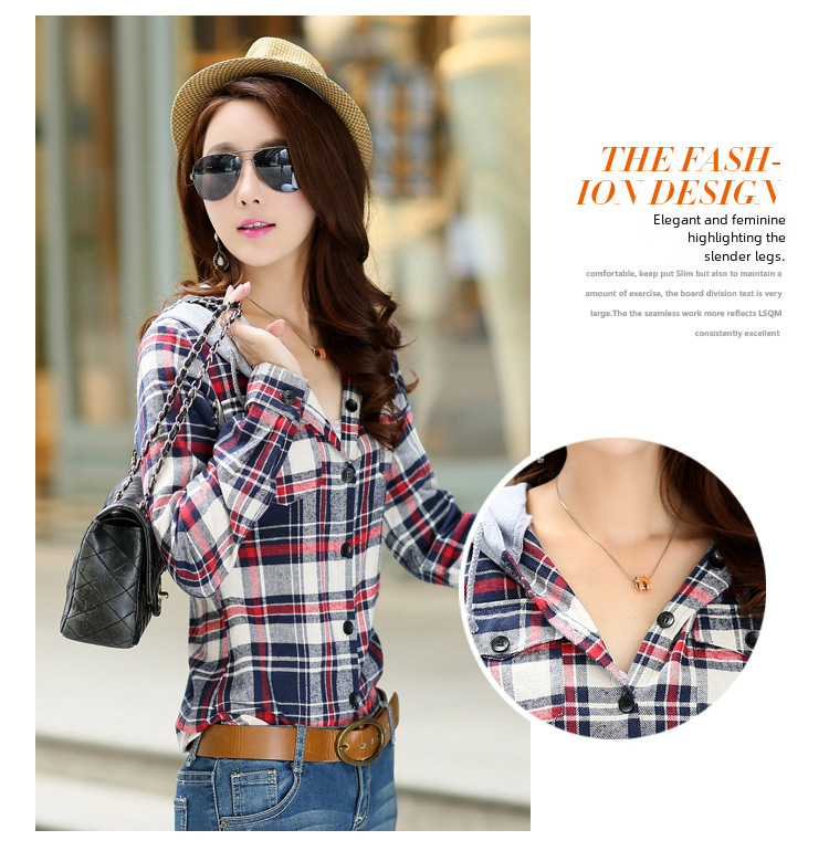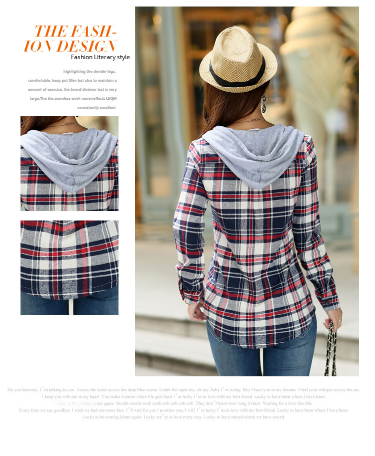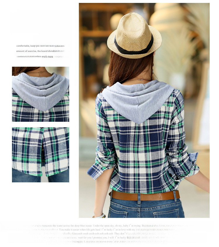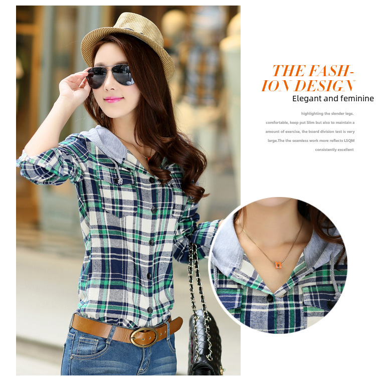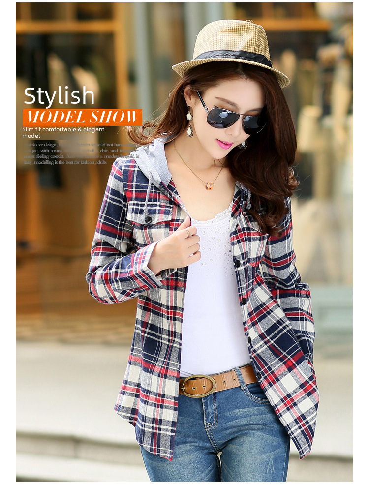 2023 Spring and Autumn New Loose Long Sleeve Plaid Hooded Shirt Shirt Women s Korean All match Fashion Women s Top