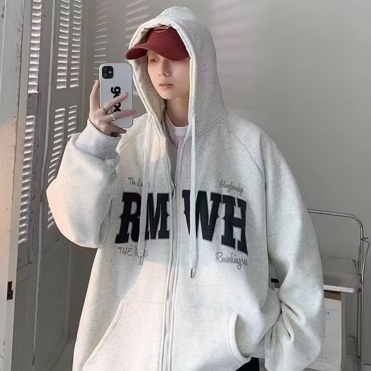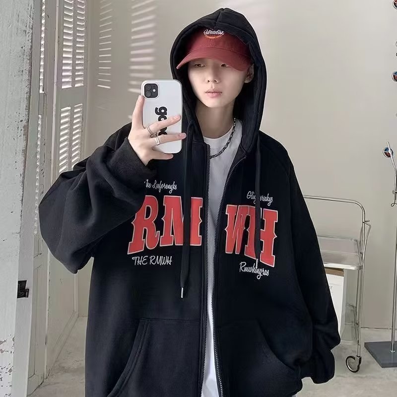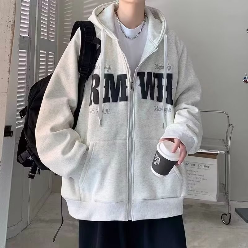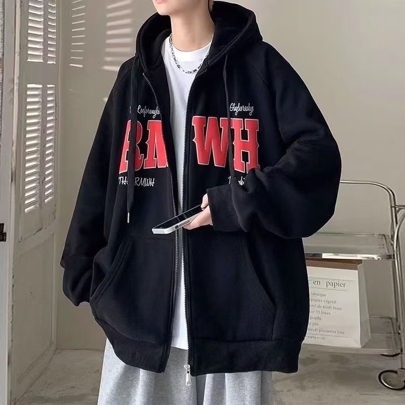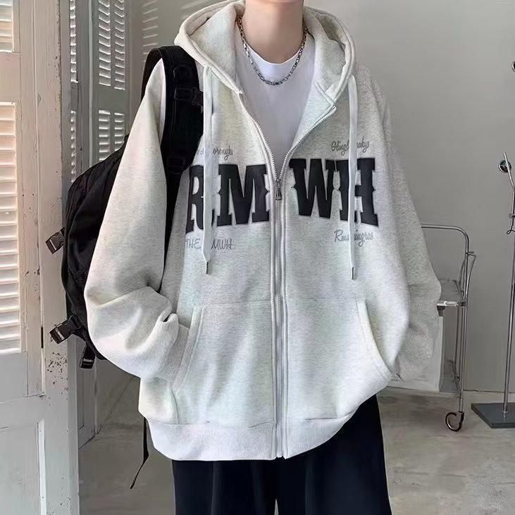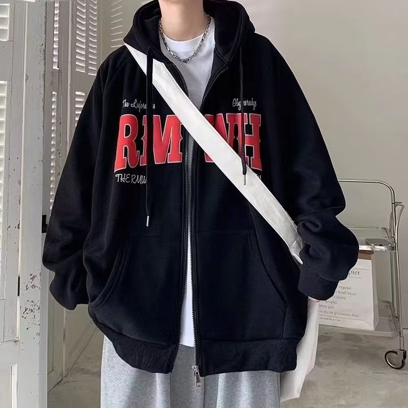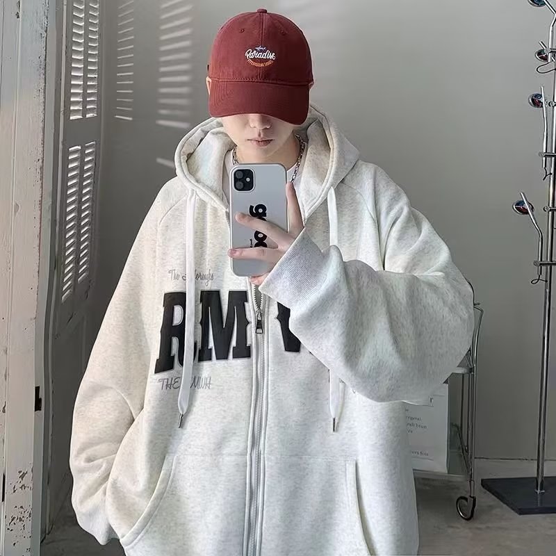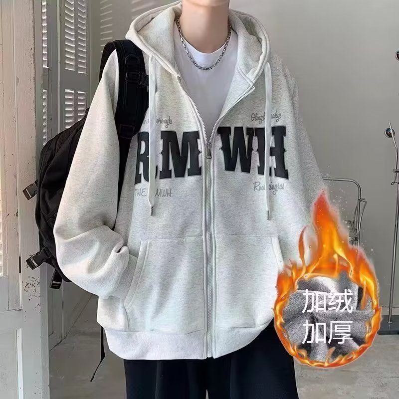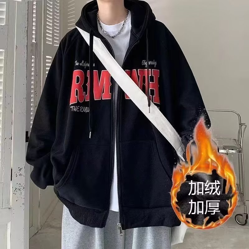2023 autumn heavy sweater men's winter American high street fashion all-matching coat spring and autumn trendy cardigan hooded top