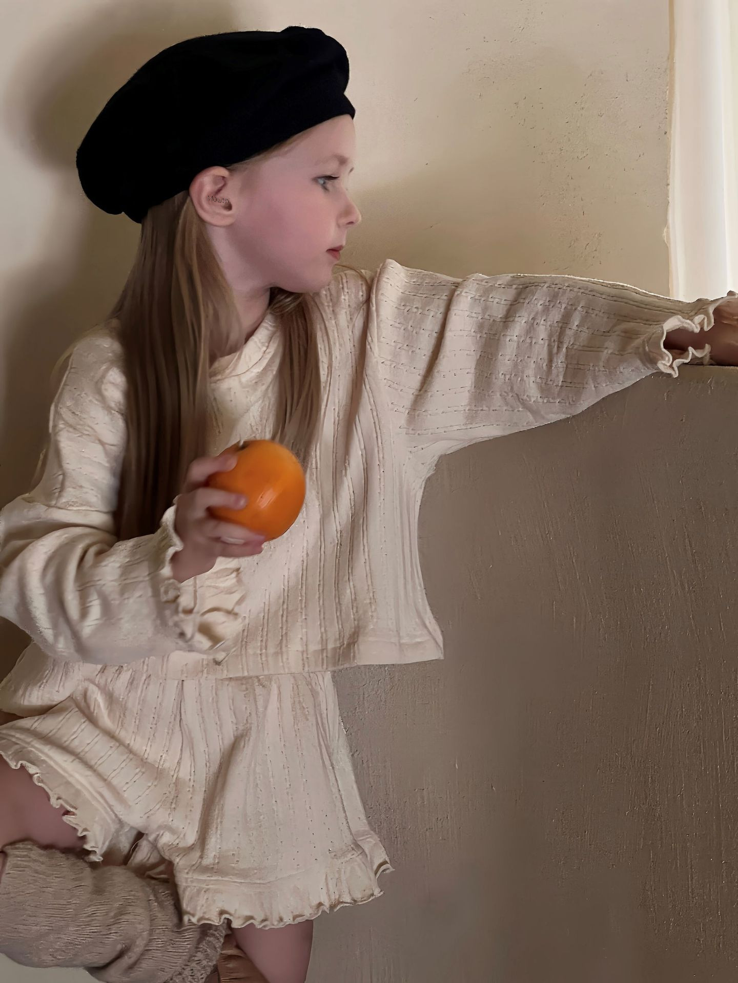 2023 autumn new children s clothing Korean style children s lace T shirt suit ins Korean style girls knitted top short pants set