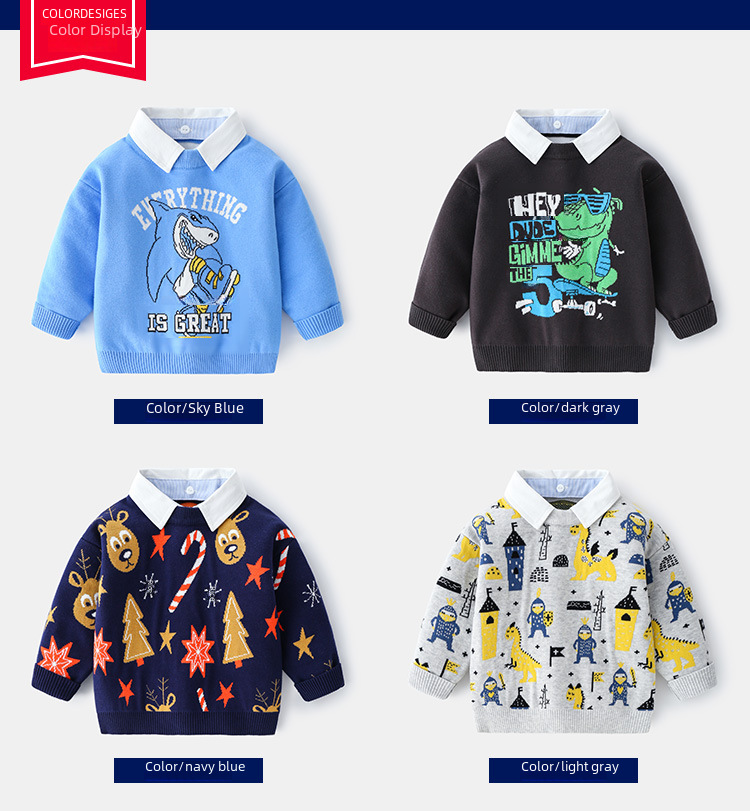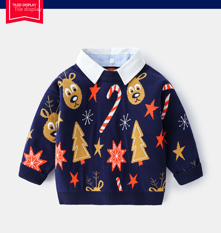 2023 new boys sweater fake two piece shirt collar children s spot sweater boy pullover sweater