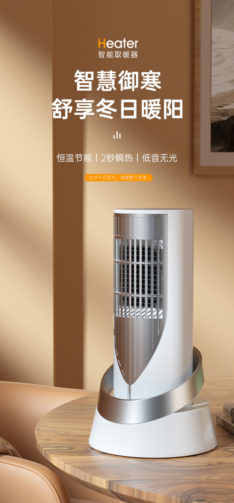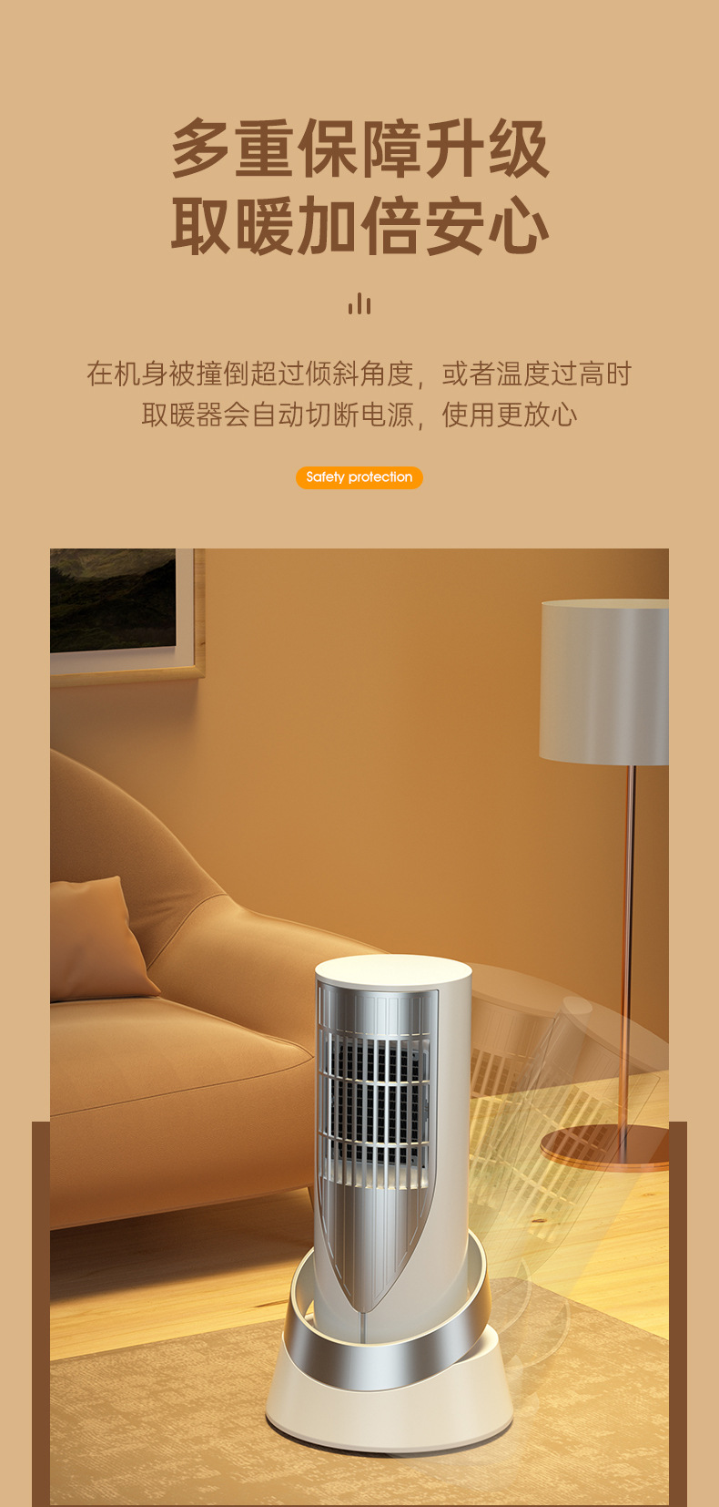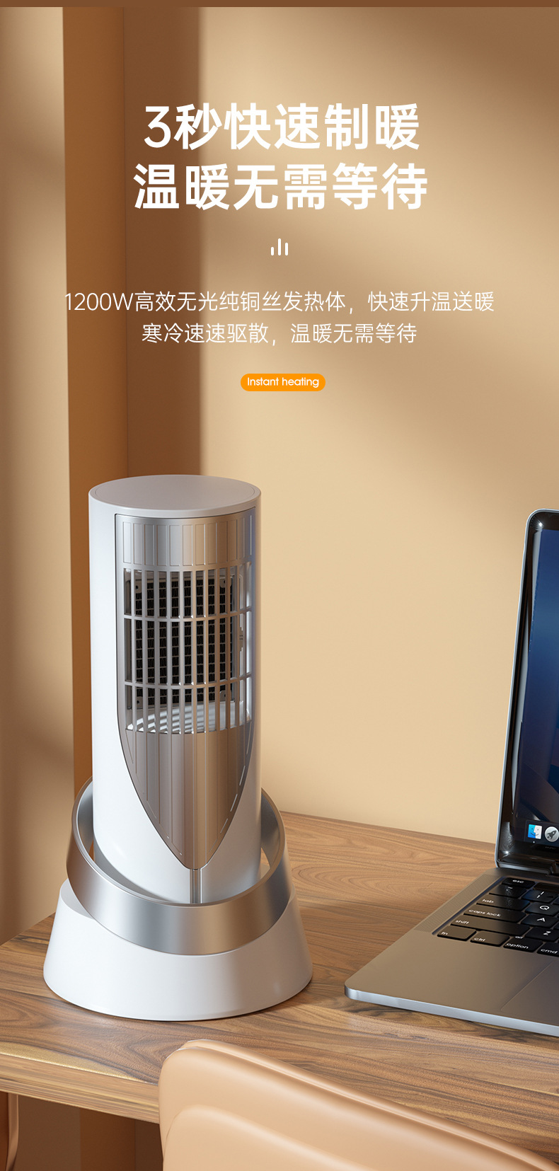 - Small Tower PTC ceramic heating (silver white) overheating protection dumping power off