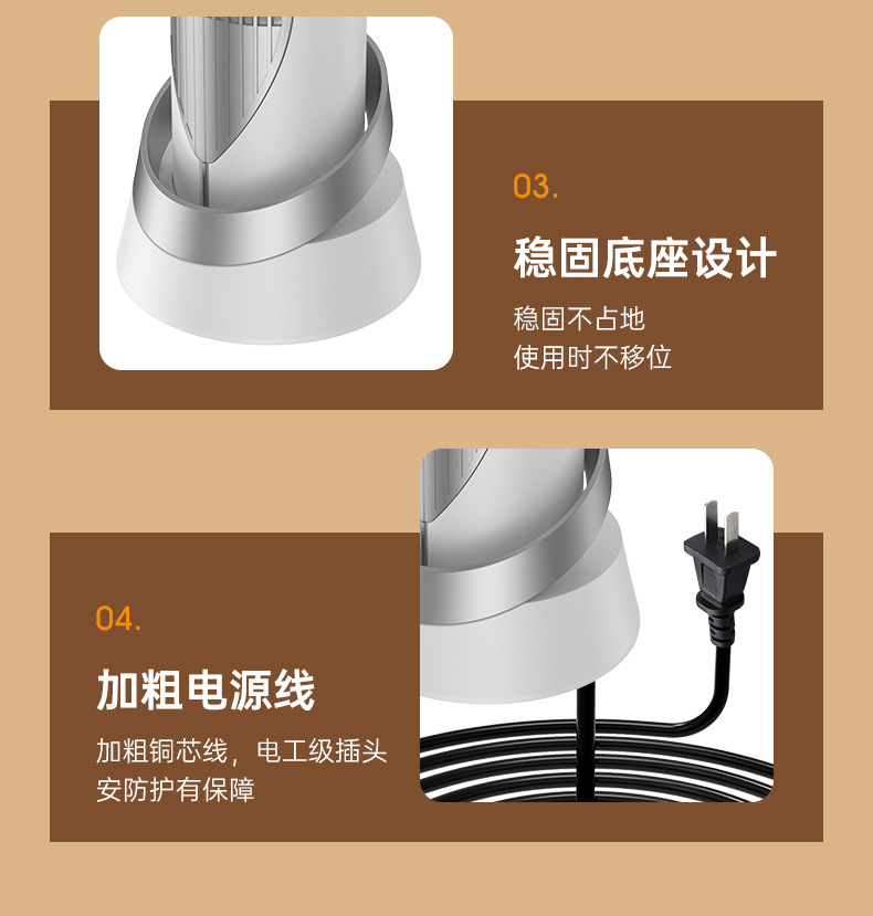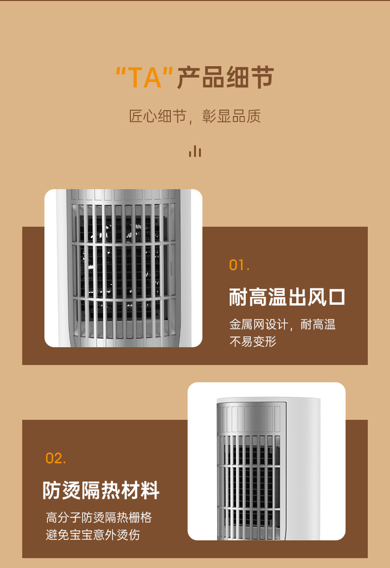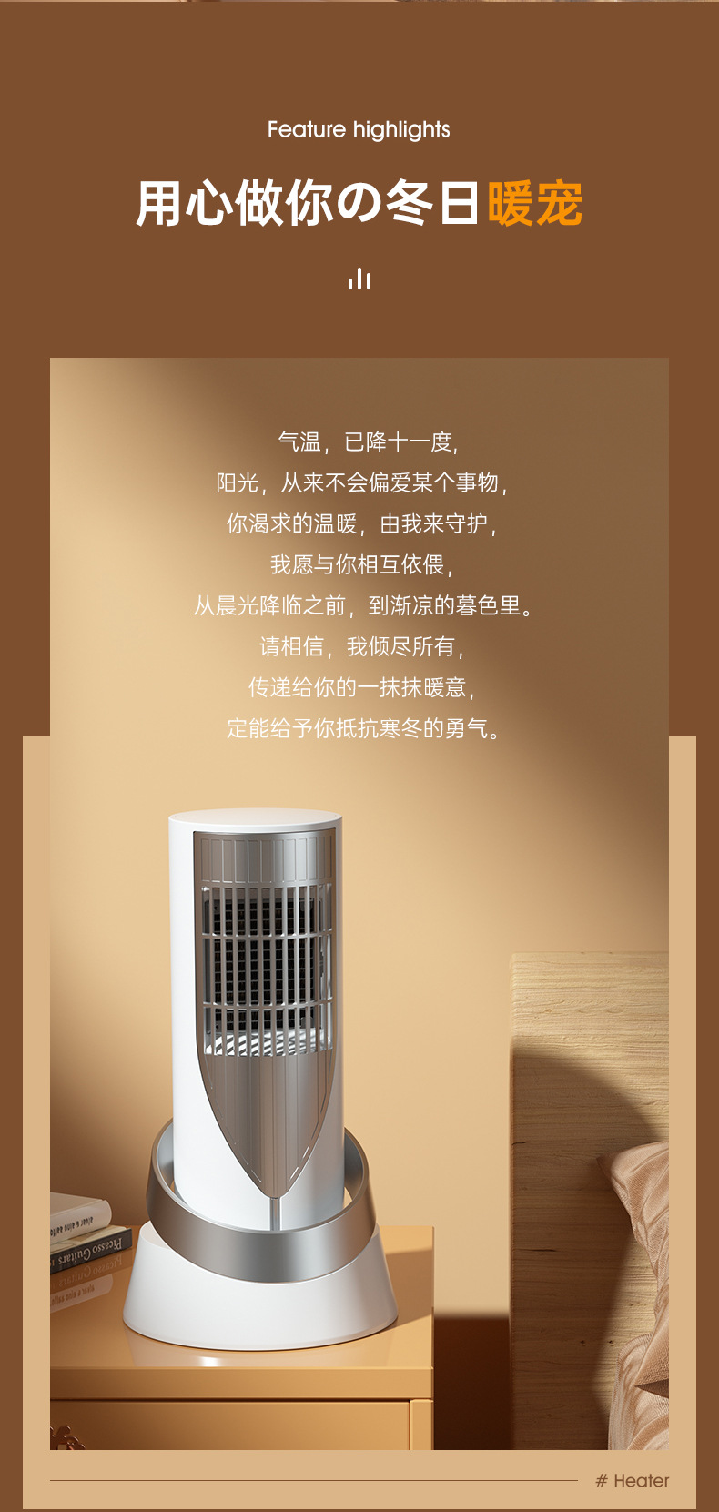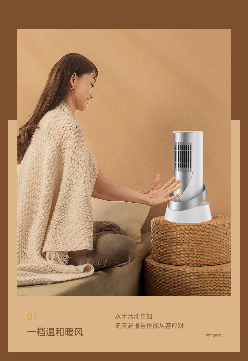 - Small Tower PTC ceramic heating (silver white) overheating protection dumping power off