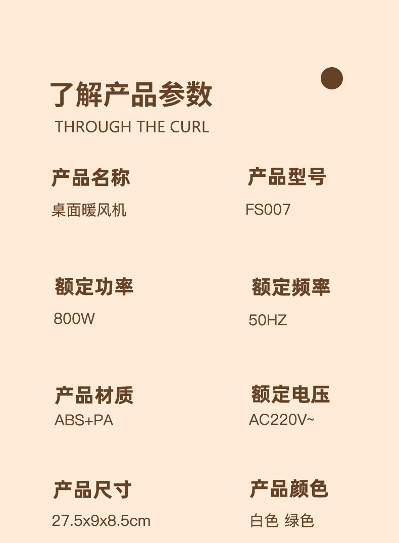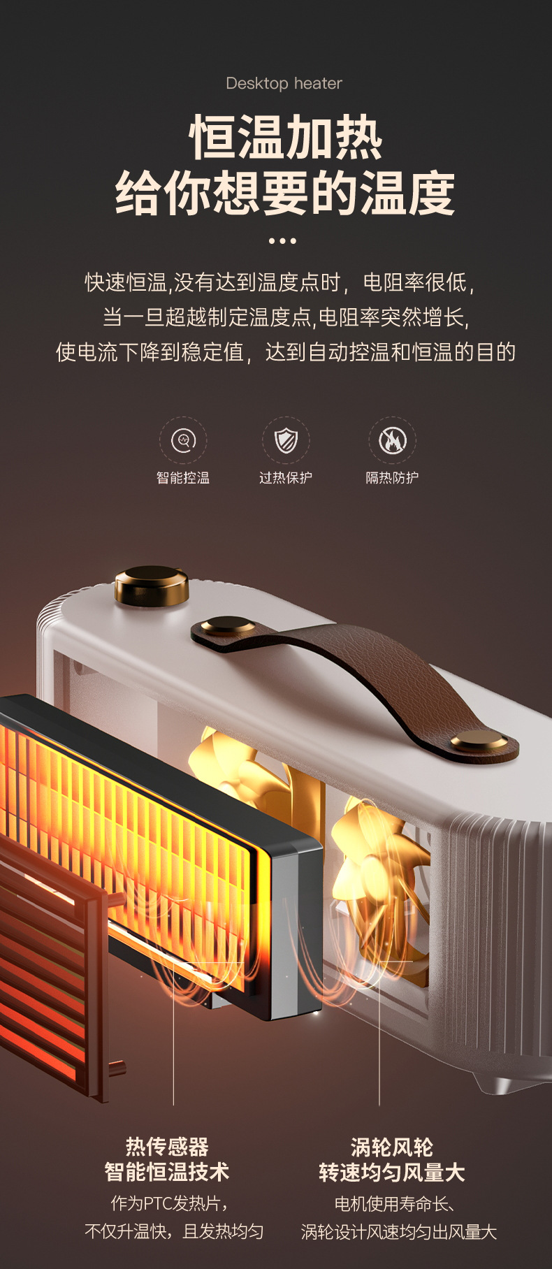 - 007PTC ceramic heating (white) overheat protection dumping power off