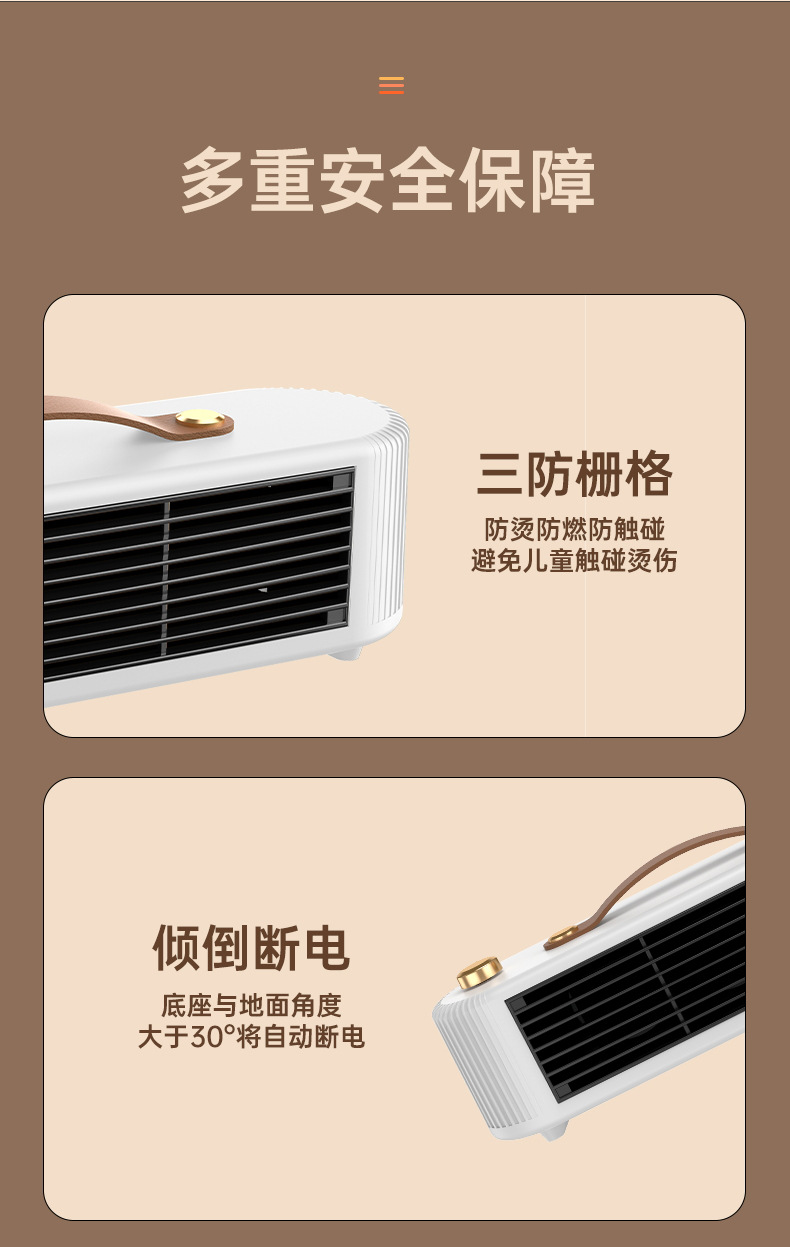 - Small square PTC ceramic heating (white) overheating protection dumping power off