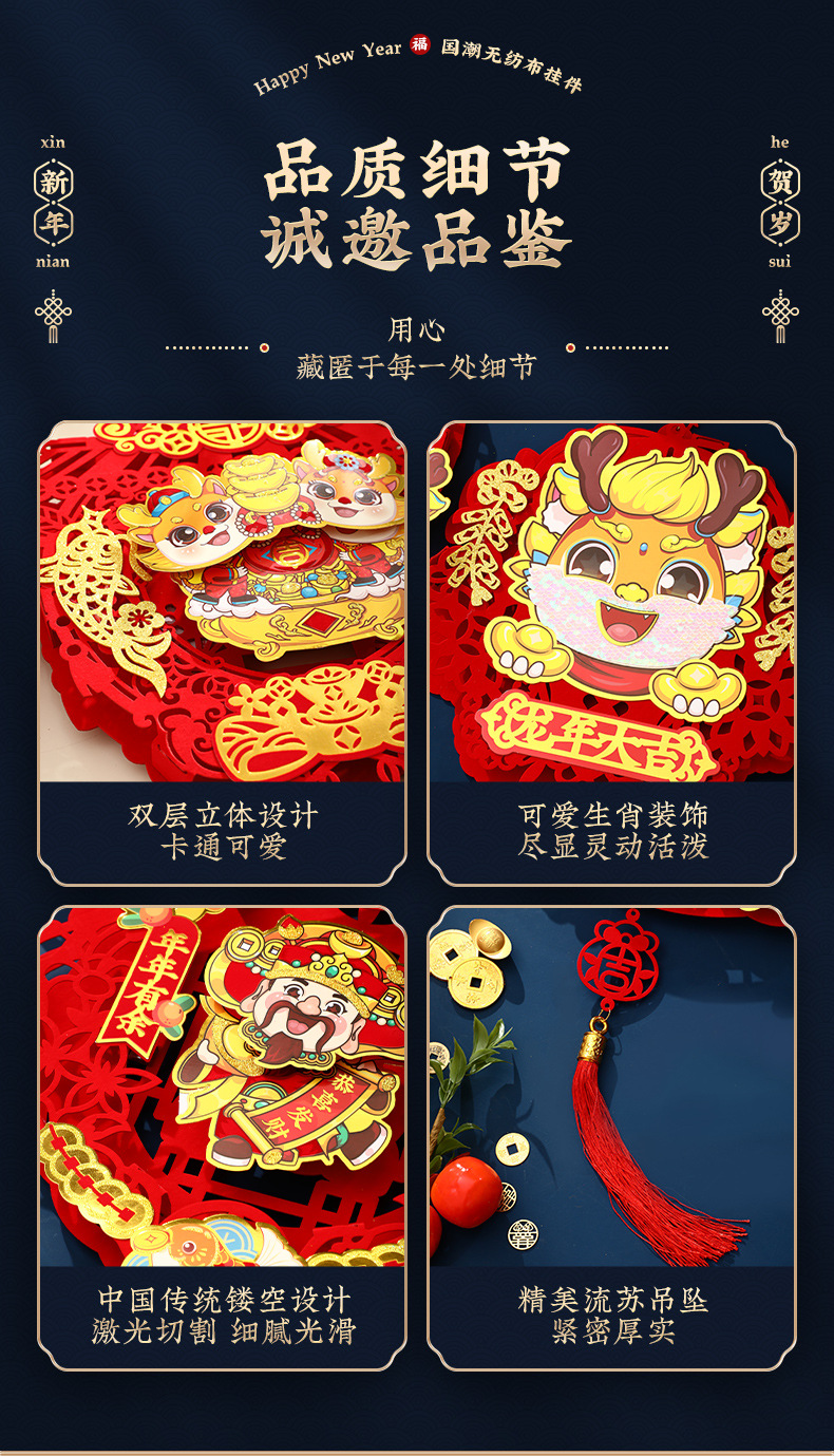 2024 Dragon Spring Festival God of Wealth pendant New Year New Year New Year decoration door three dimensional hanging decoration indoor living room layout