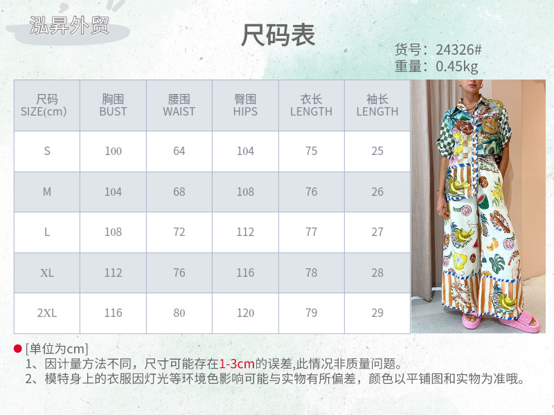 2024 European and American New Fashion Casual Printed Two piece Cross border Hot Selling Shirt Loosen Wide Leg Pants Set
