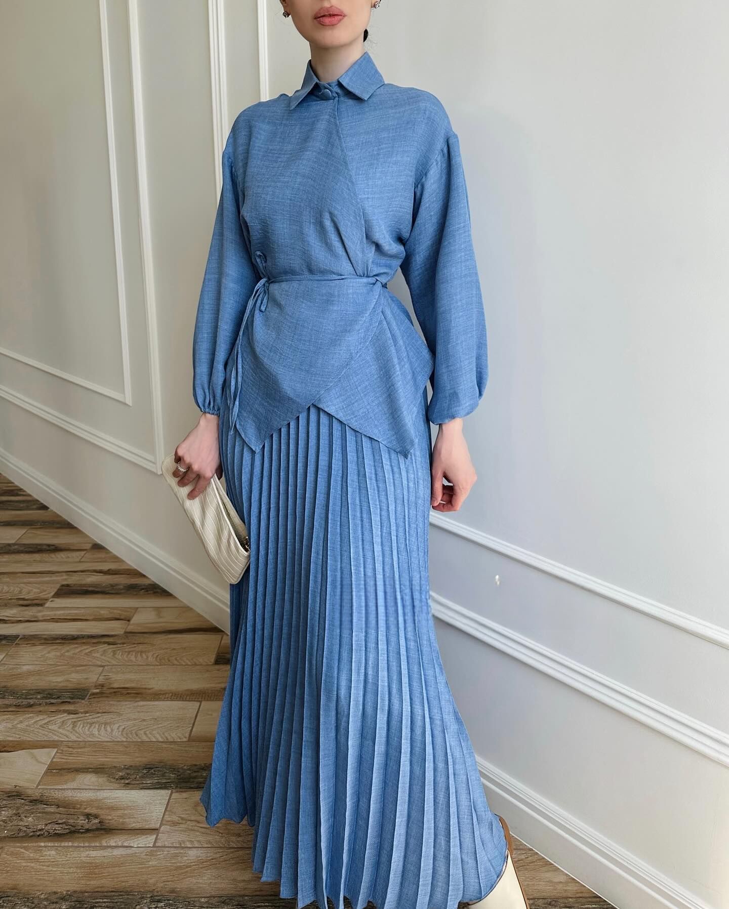 2024 New Women s Muslim Style Elegant Fashion Pleated Skirt Strap Top Spring Dress