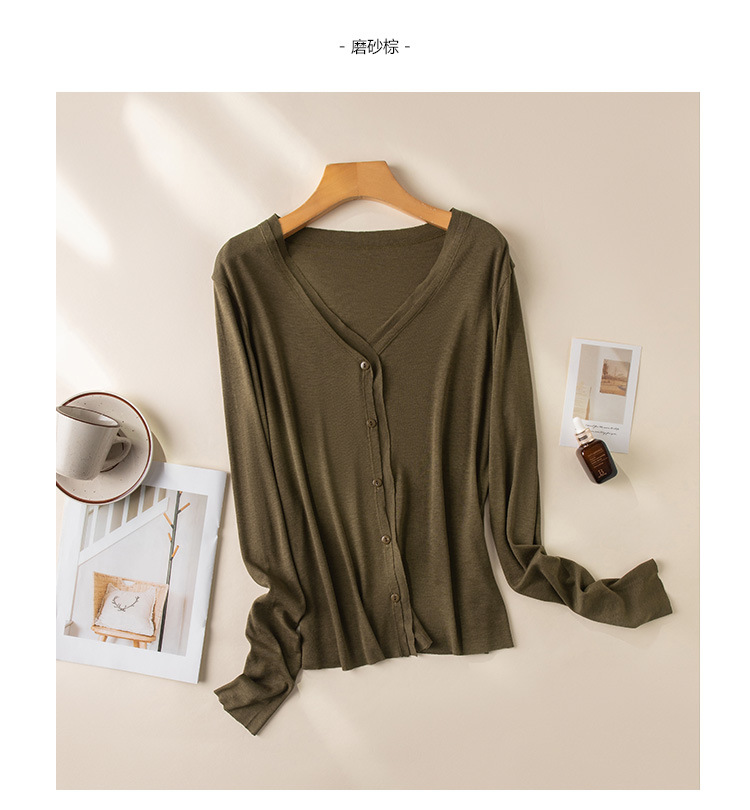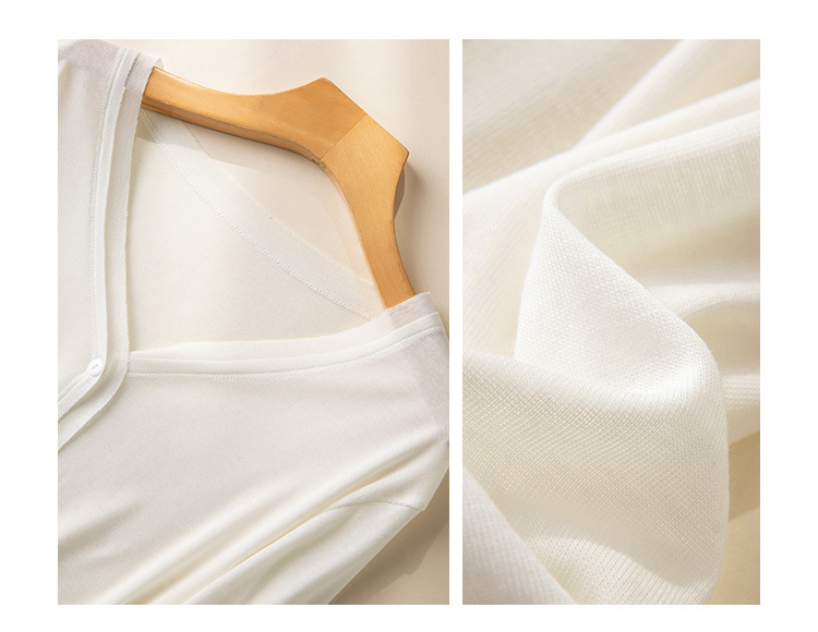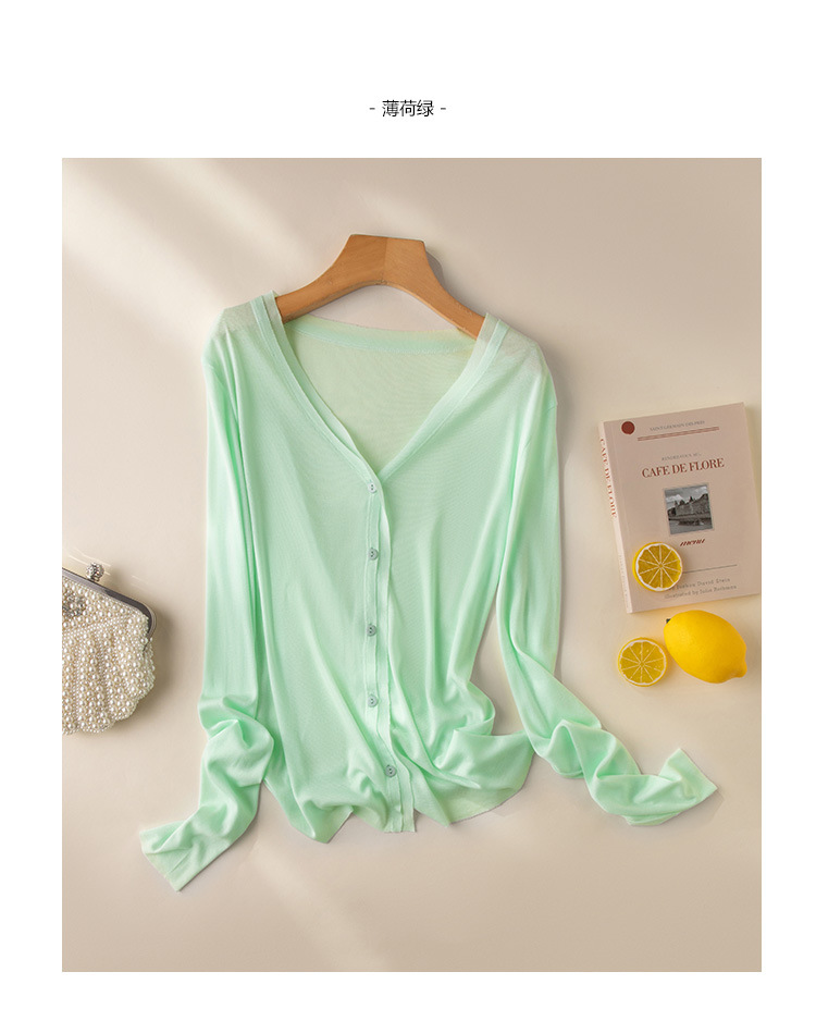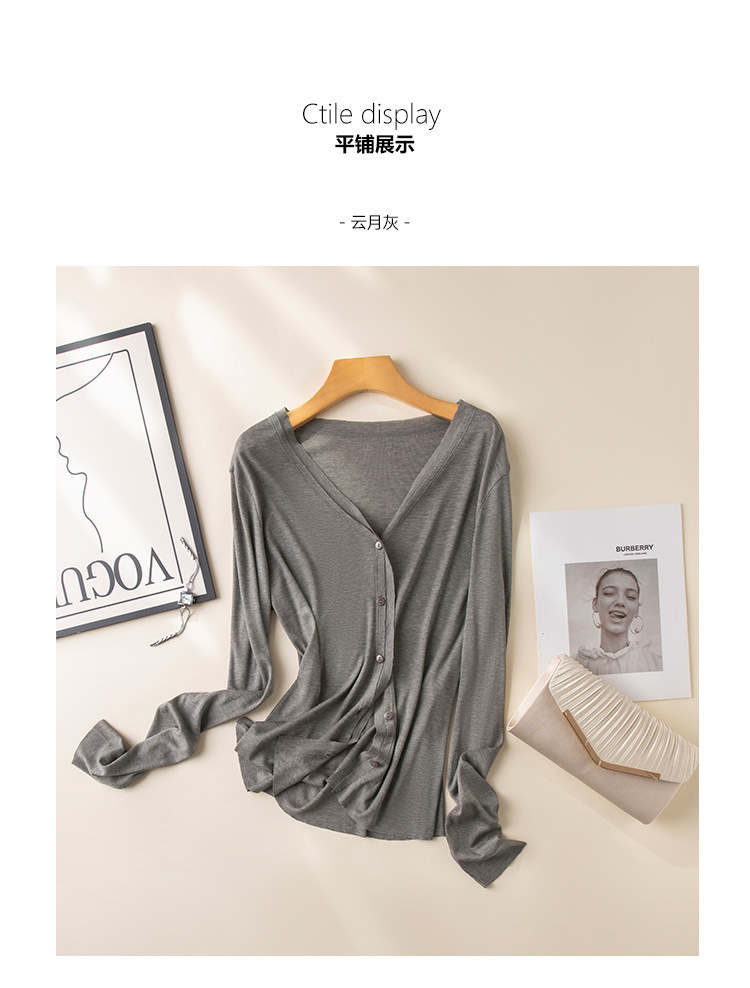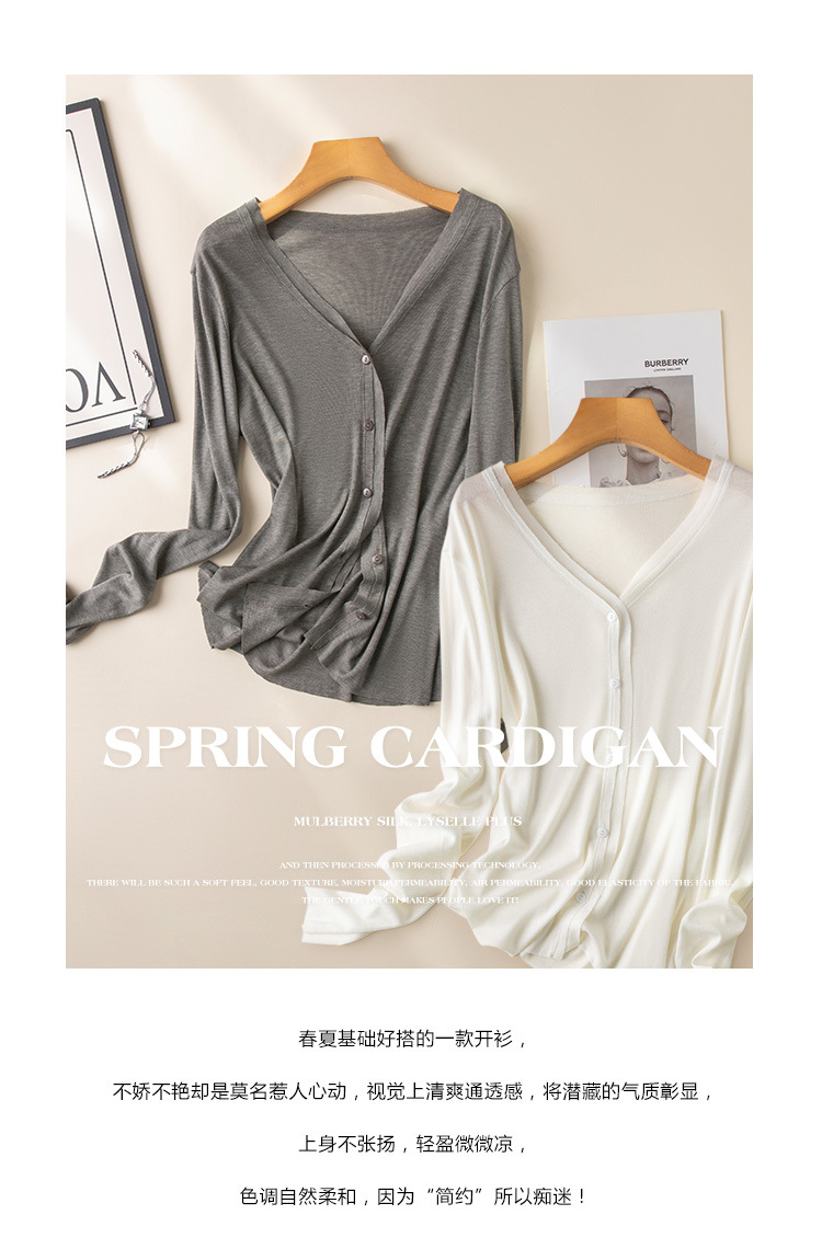 2024 Puyuan new Tencel mulberry silk T shirt elegant commuter V neck double layer sun protection long sleeve knitted cardigan for women