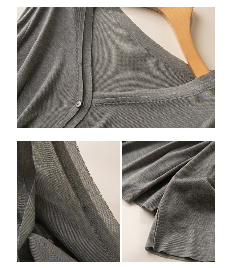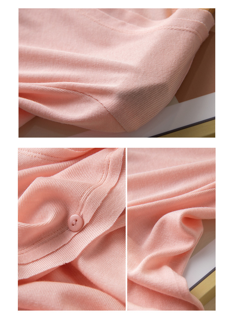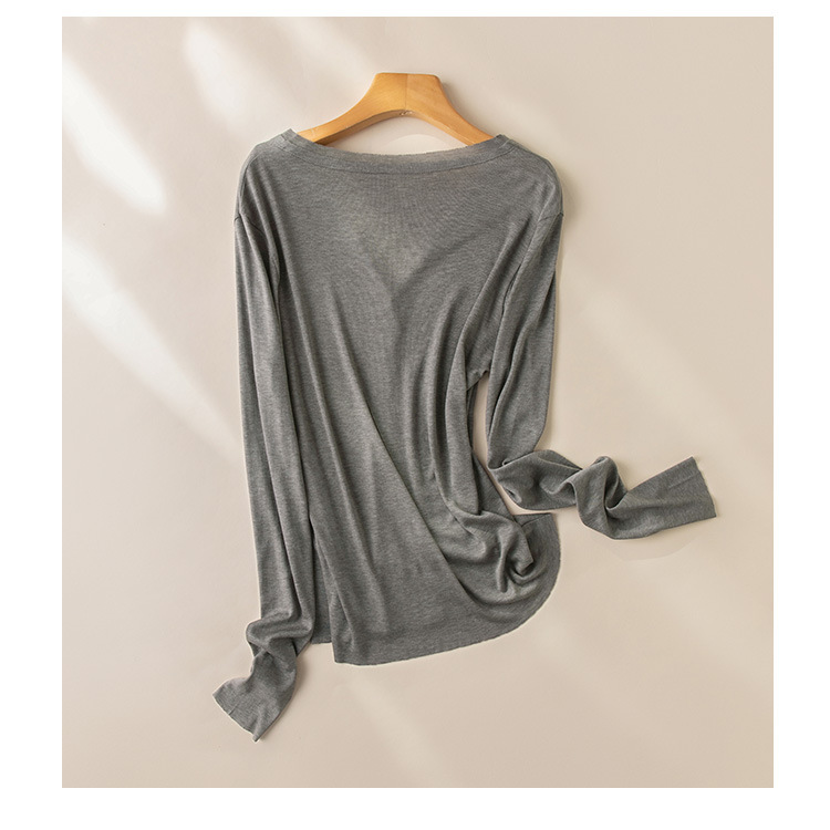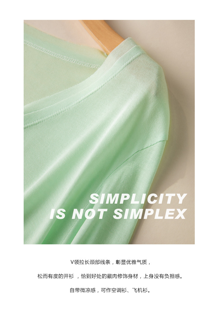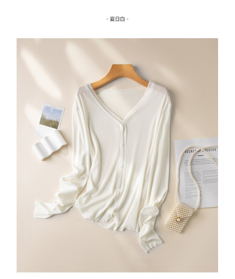 2024 Puyuan new Tencel mulberry silk T shirt elegant commuter V neck double layer sun protection long sleeve knitted cardigan for women