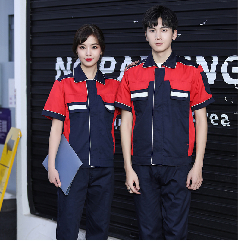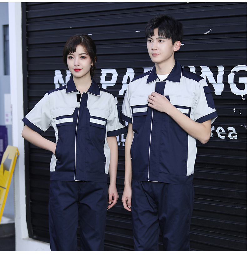 2024 Summer New Polyester Cotton Work Clothes Wear resistant Machine Repair Factory Suit Men s Labor Protection Short sleeved Work Clothes Customized