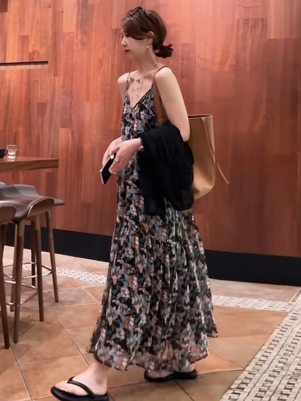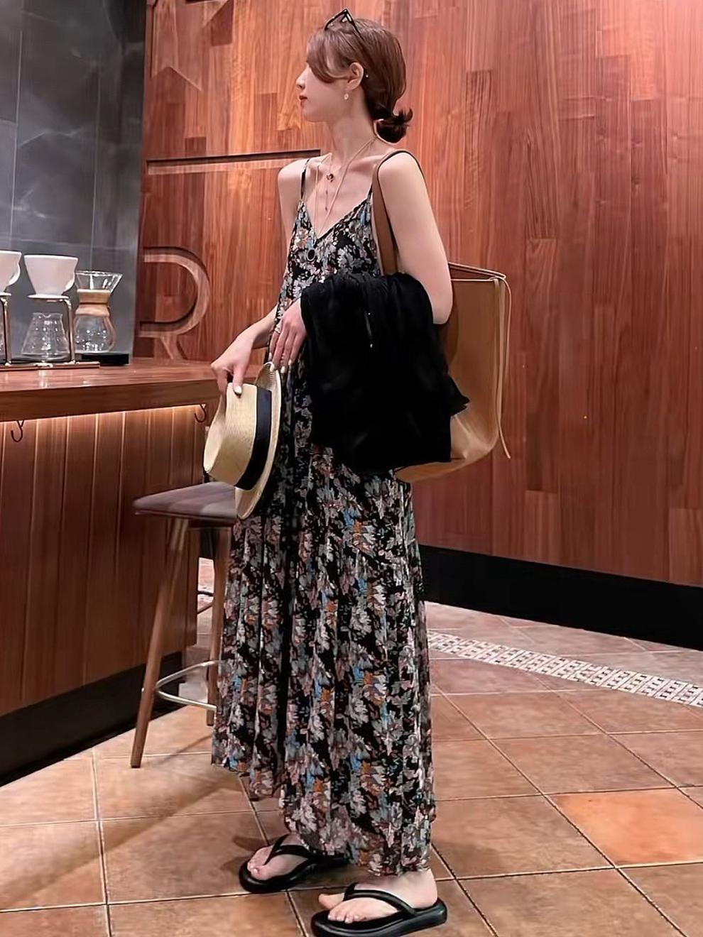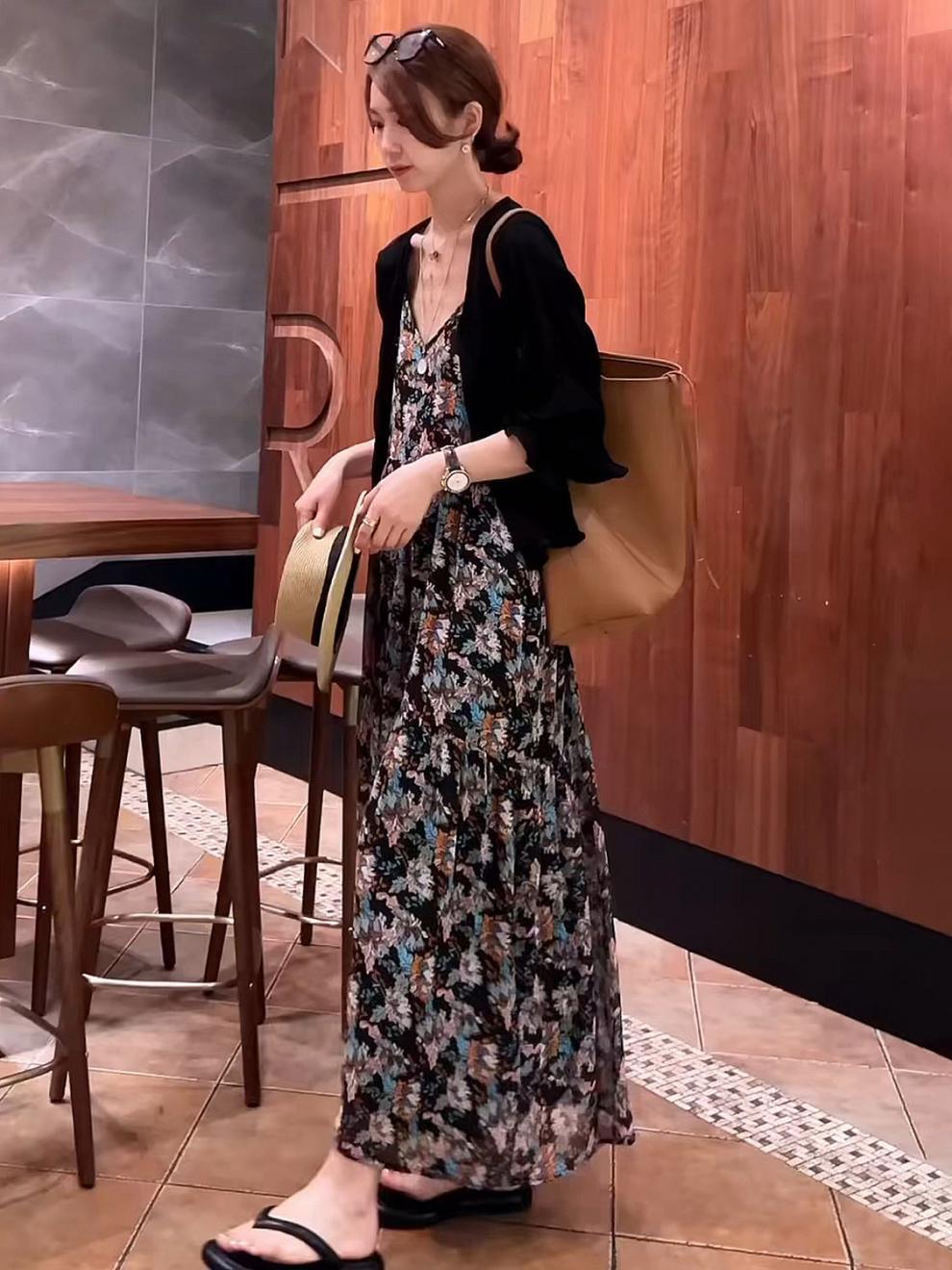 2024 Summer New Yamamoto Style suit Women s Sling Floral Long Dress Tulle Sunscreen Cardigan Fashion Two piece Set