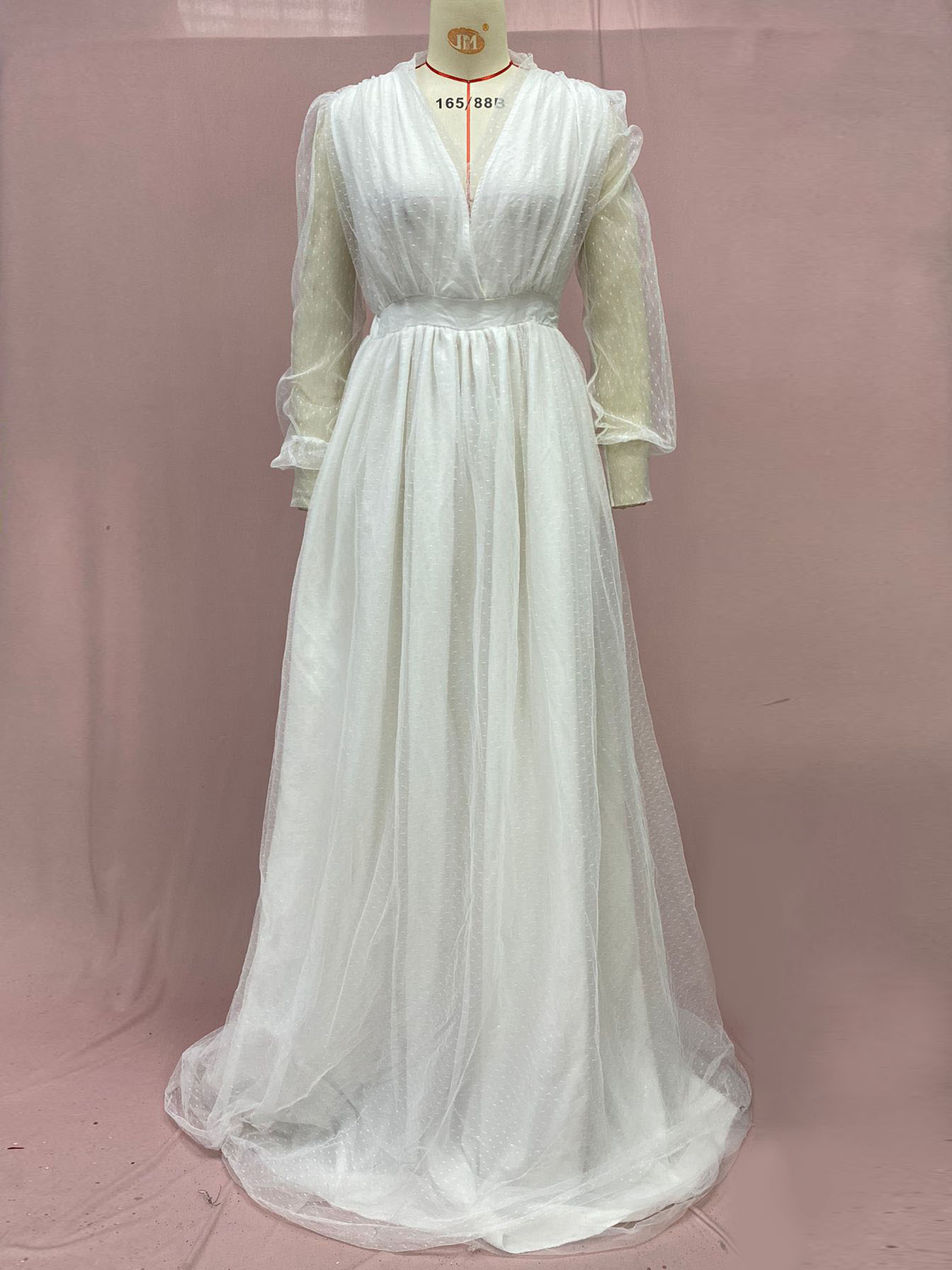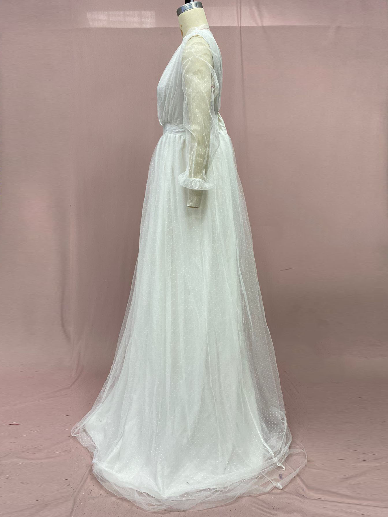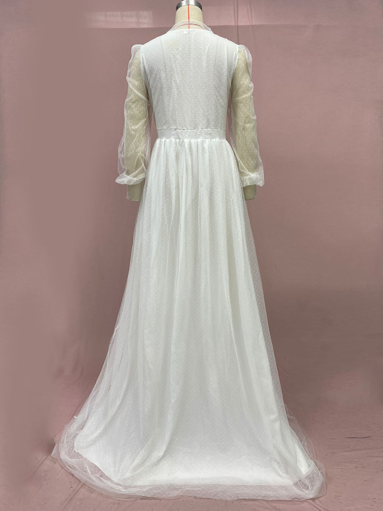 2024 cross border new European and American pregnant women plus size women s long see through long sleeved mesh dress deep V large swing dress