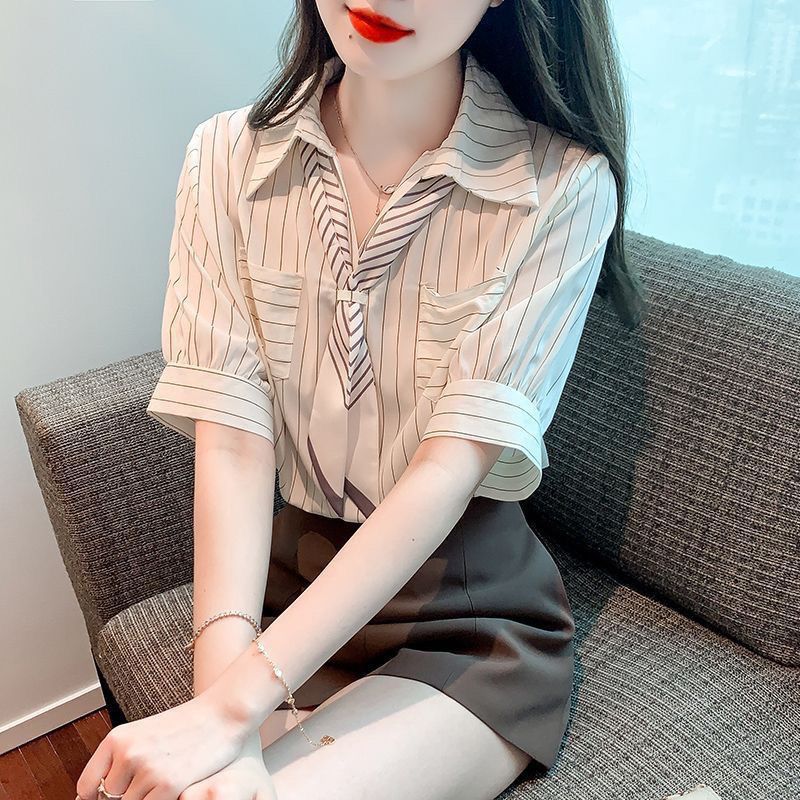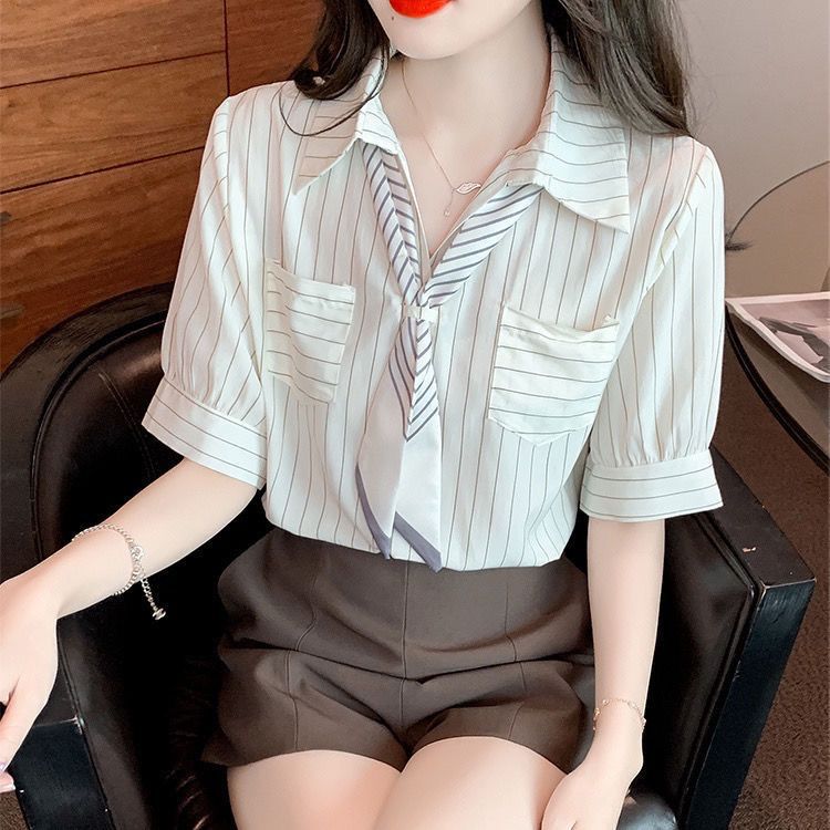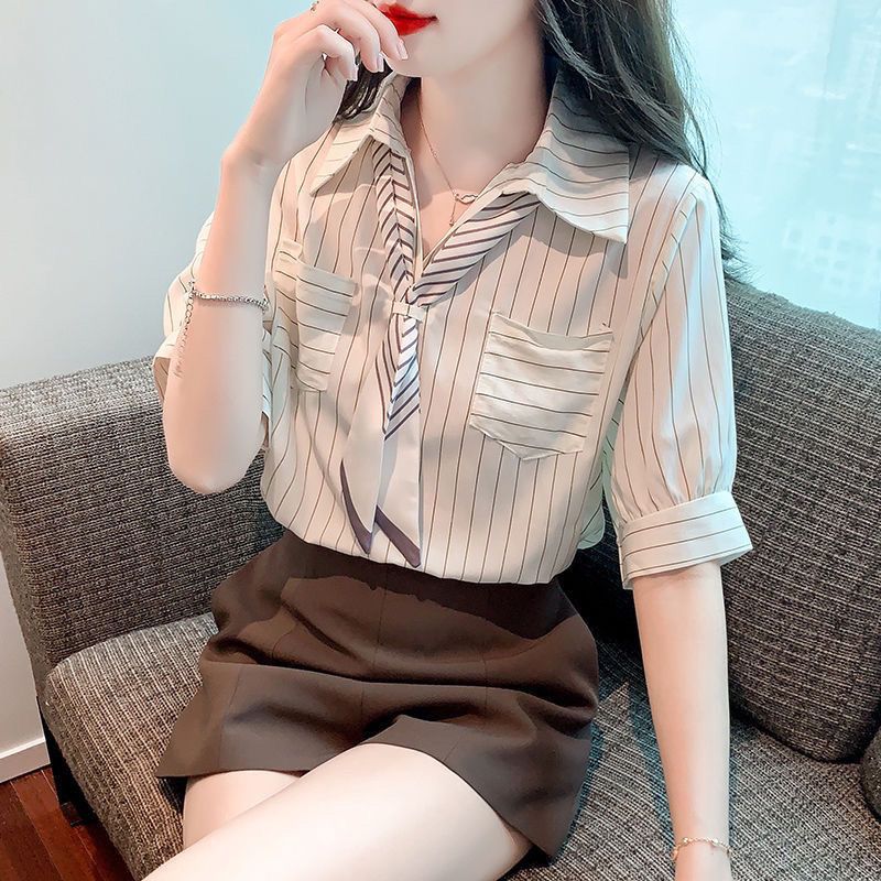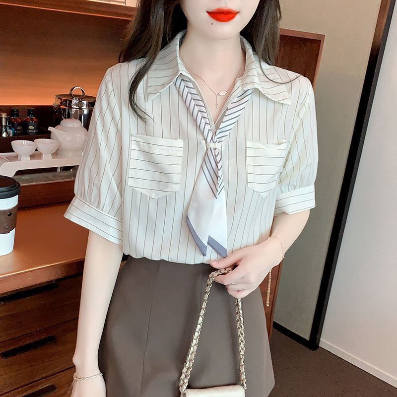 2024 new casual all match shirt women s short sleeved summer design sense niche chic pocket polo collar shirt
