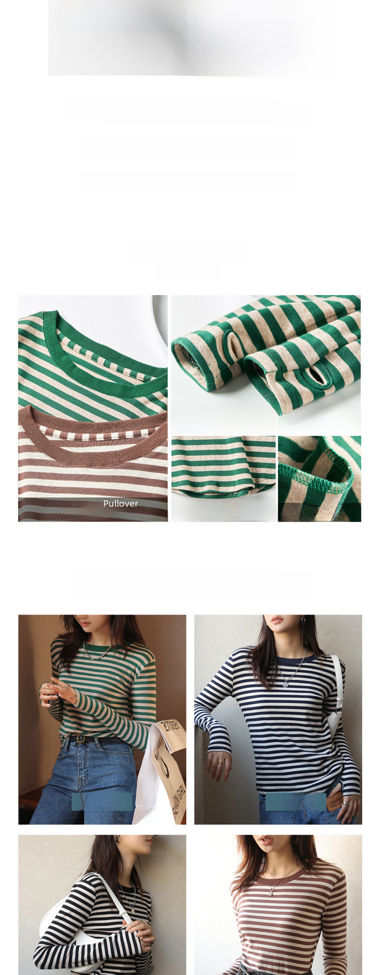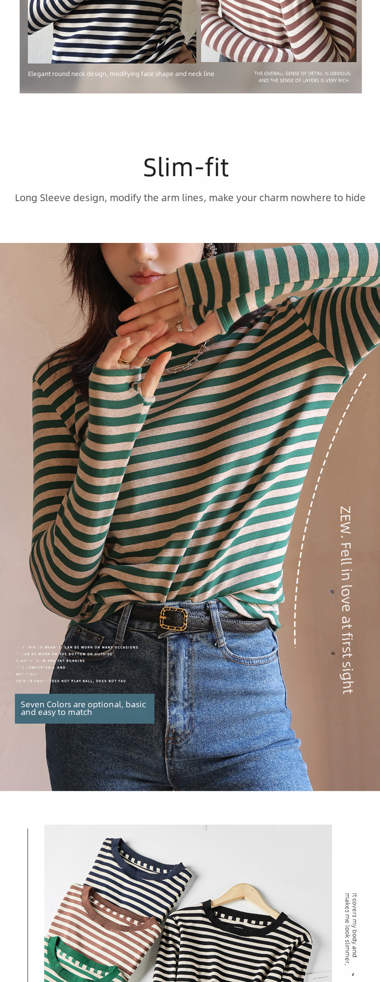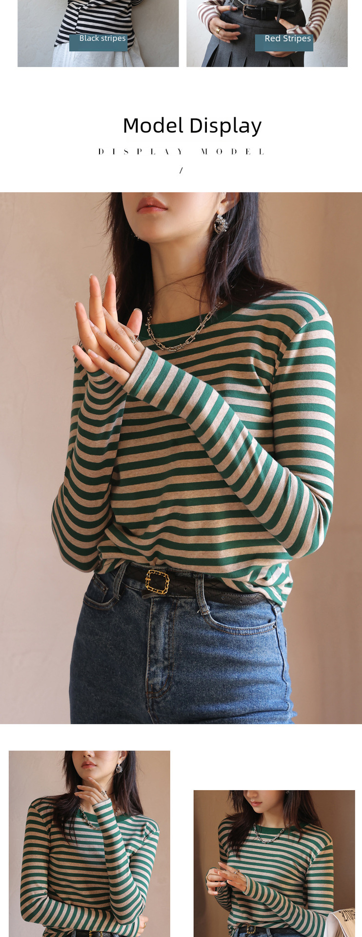 2024 new green striped T shirt women s long sleeved spring and autumn small shirt top undershirt autumn women s T shirt
