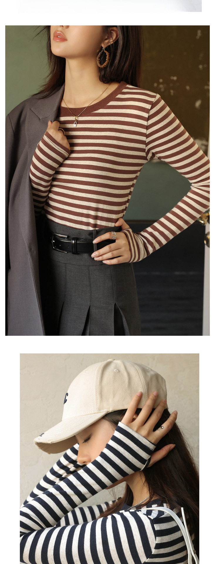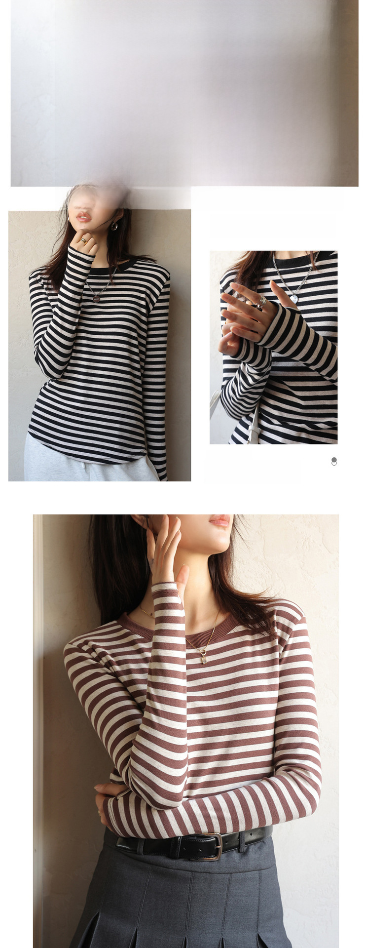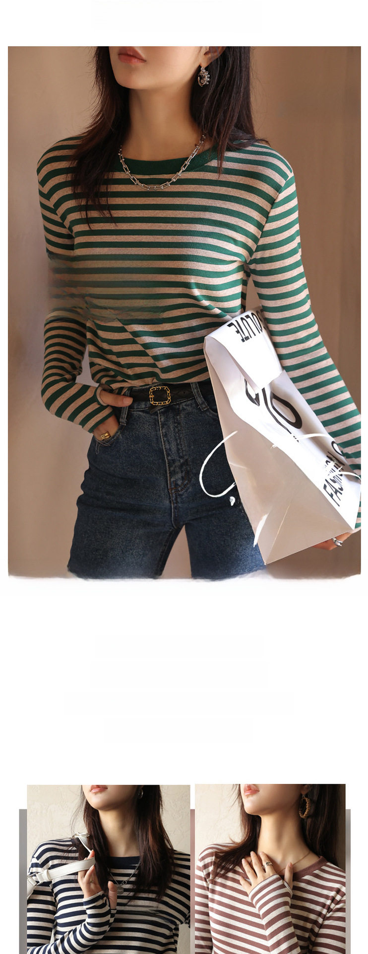 2024 new green striped T shirt women s long sleeved spring and autumn small shirt top undershirt autumn women s T shirt