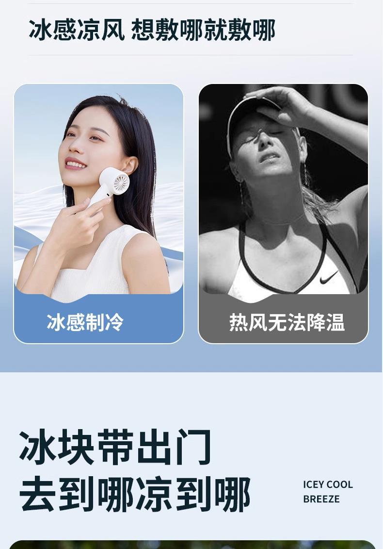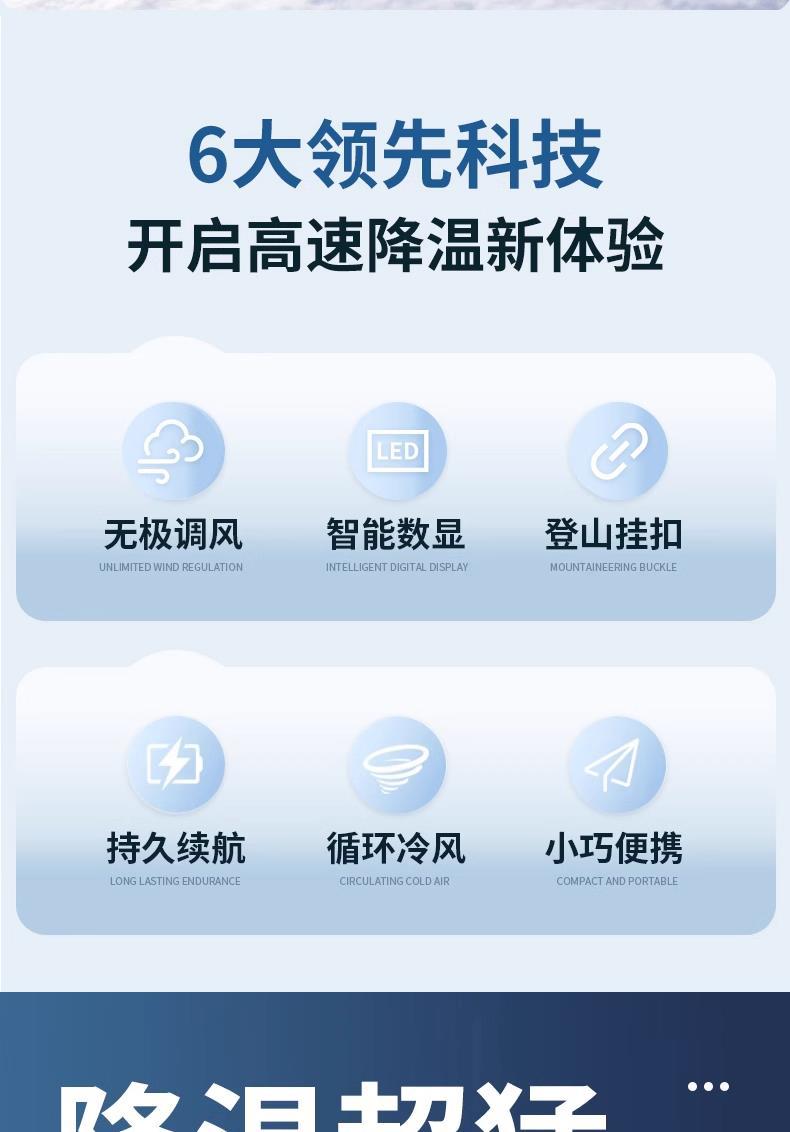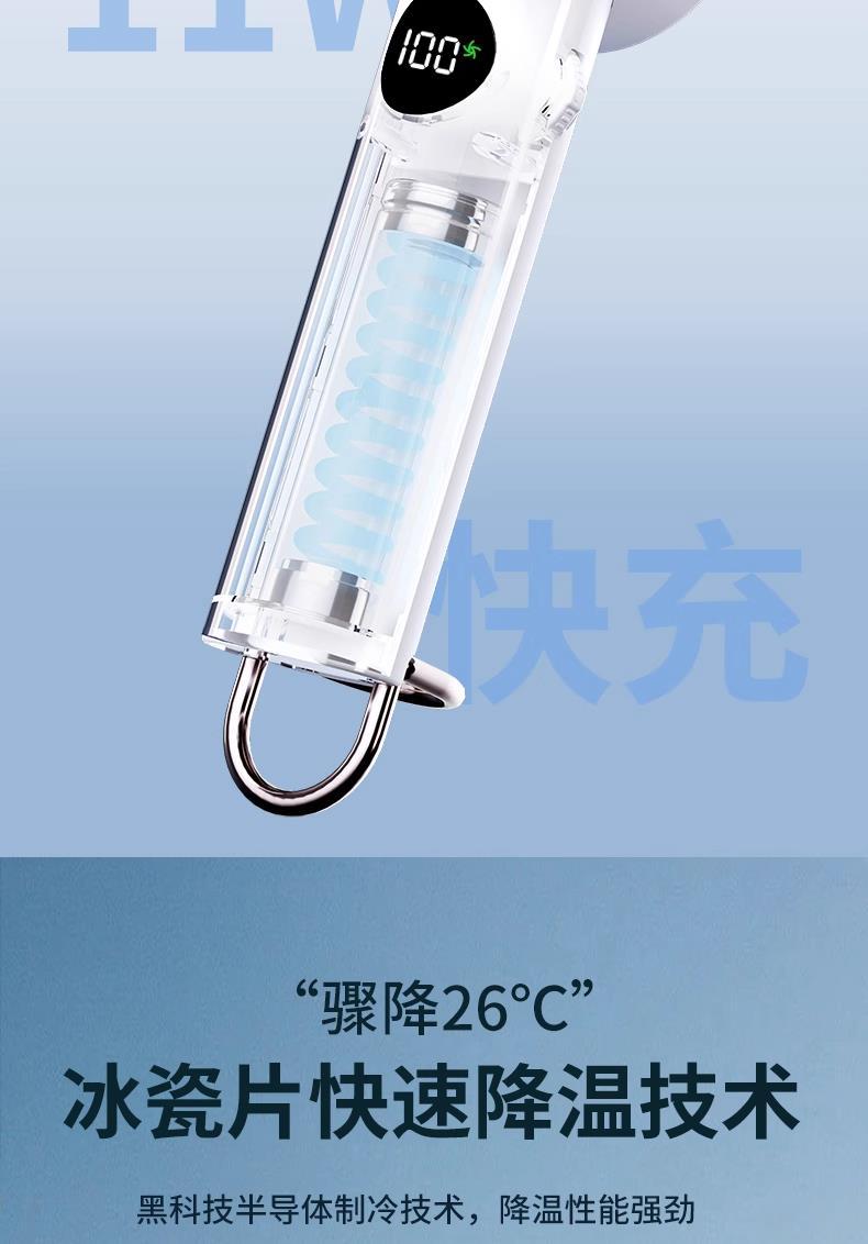 - [Upgraded Cloud White] 3000mAh❄100 gear infinite adjustment❄superconducting ice magnetic refrigeration❄intelligent digital display❄Innovative Hanging Buckle