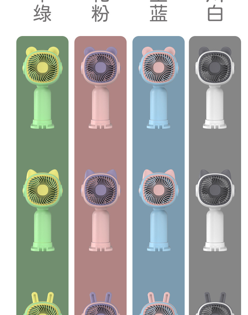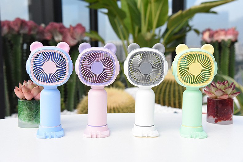 2024 new handheld cartoon cute mini fan portable mobile phone stand desktop student logo