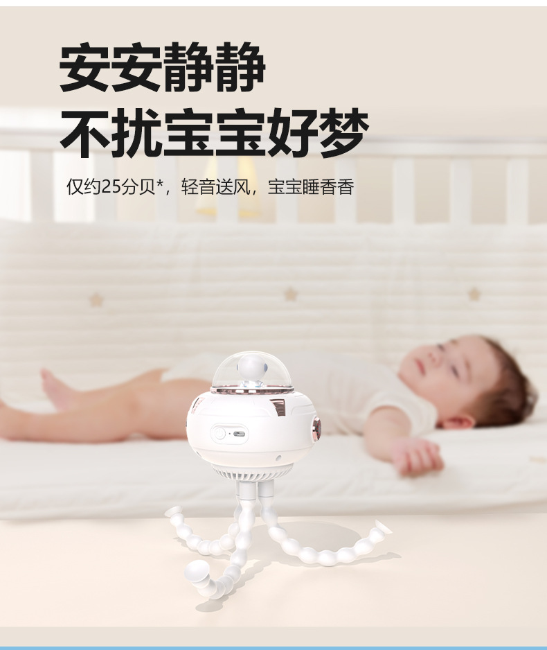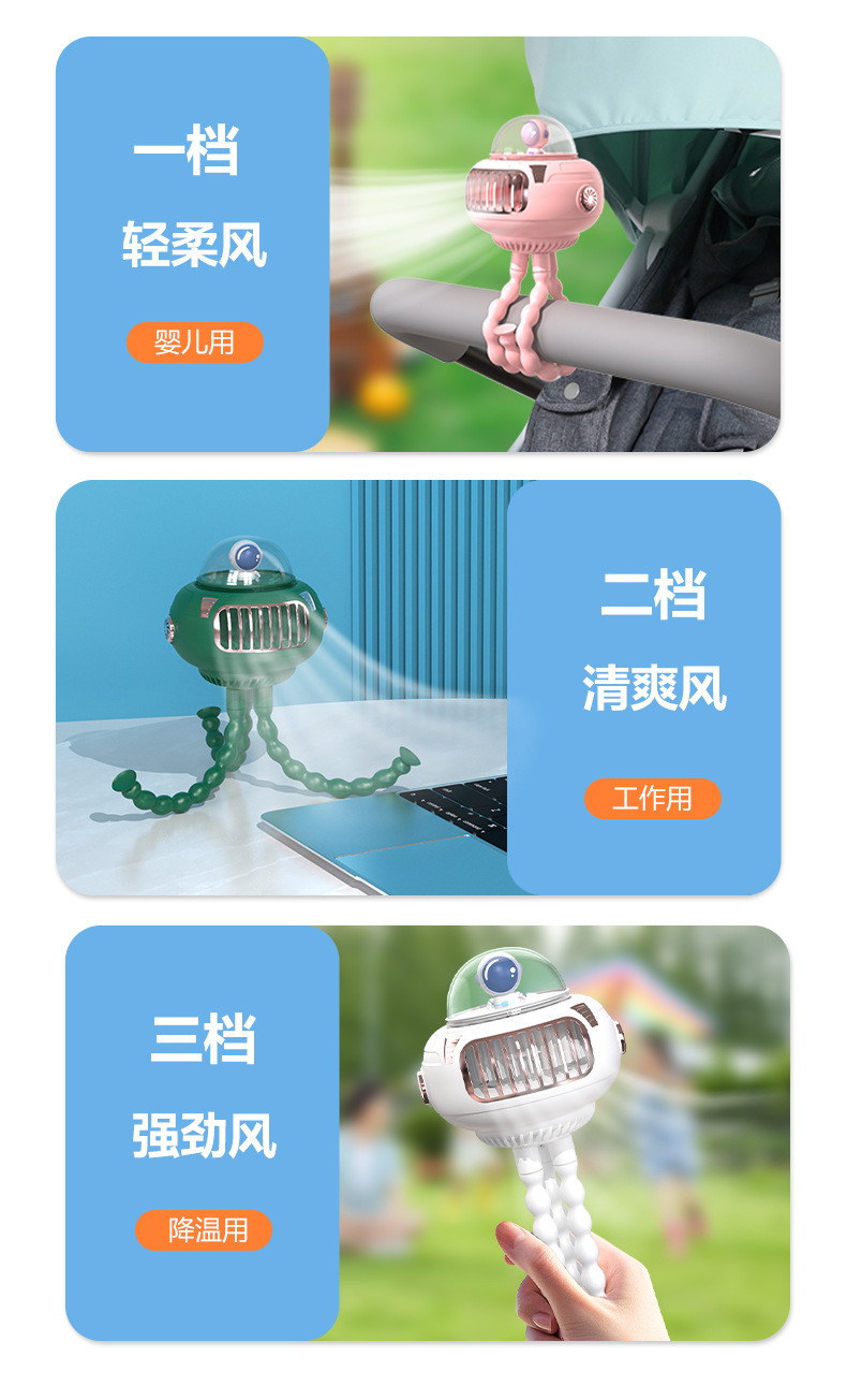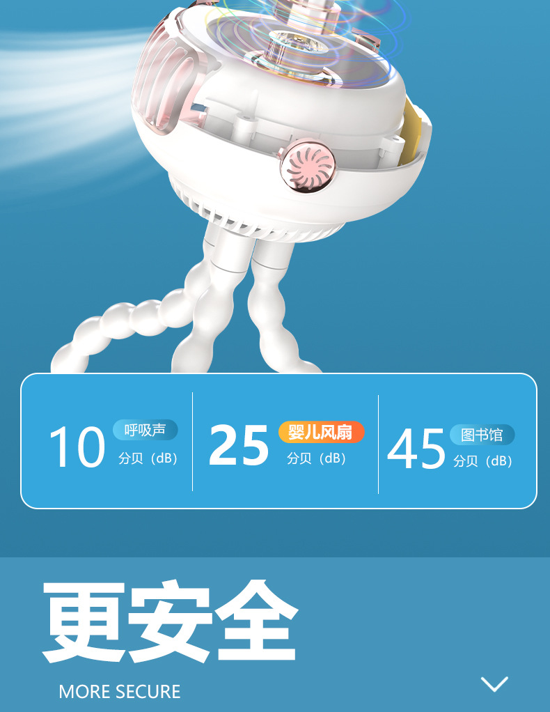 2024 new mosquito repellent stroller charging small fan octopus leafless shaking mute portable anti pinch hand