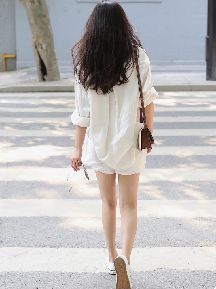 2024 new women s linen shirt shorts casual suit loose casual lazy style cotton and linen shirt two piece set