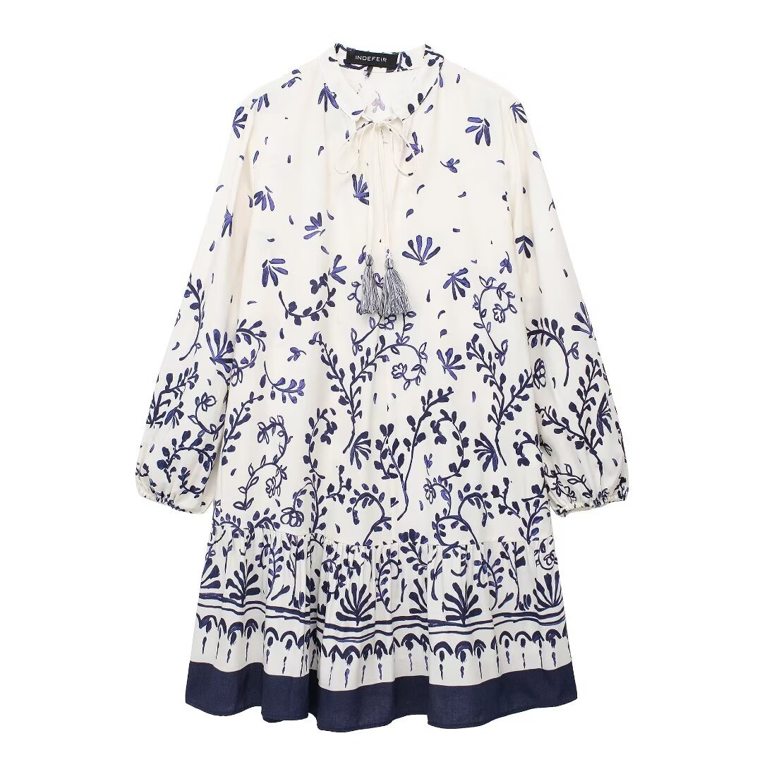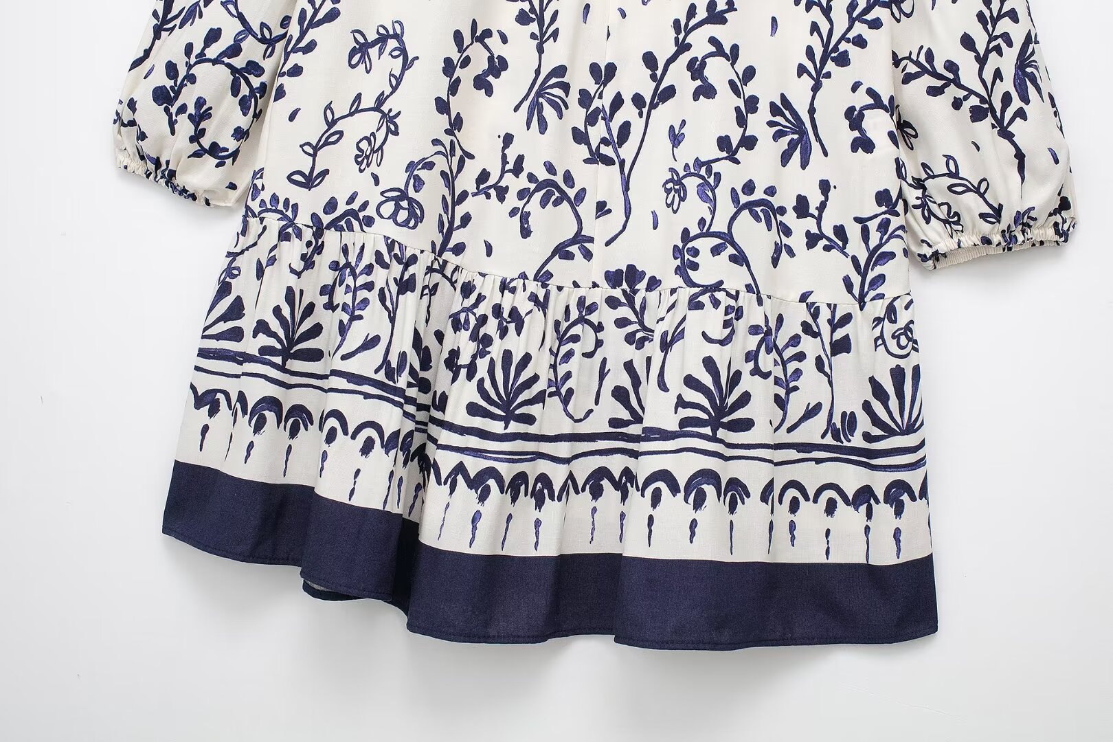 2024 spring new European and American cross border women s elegant printed mini dress w085 945691