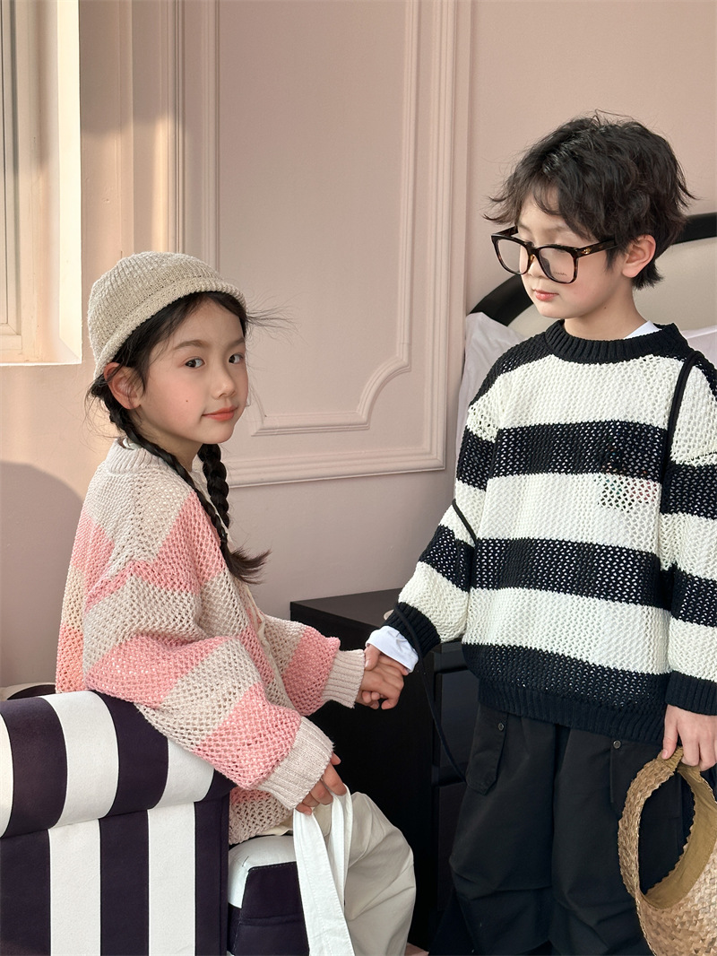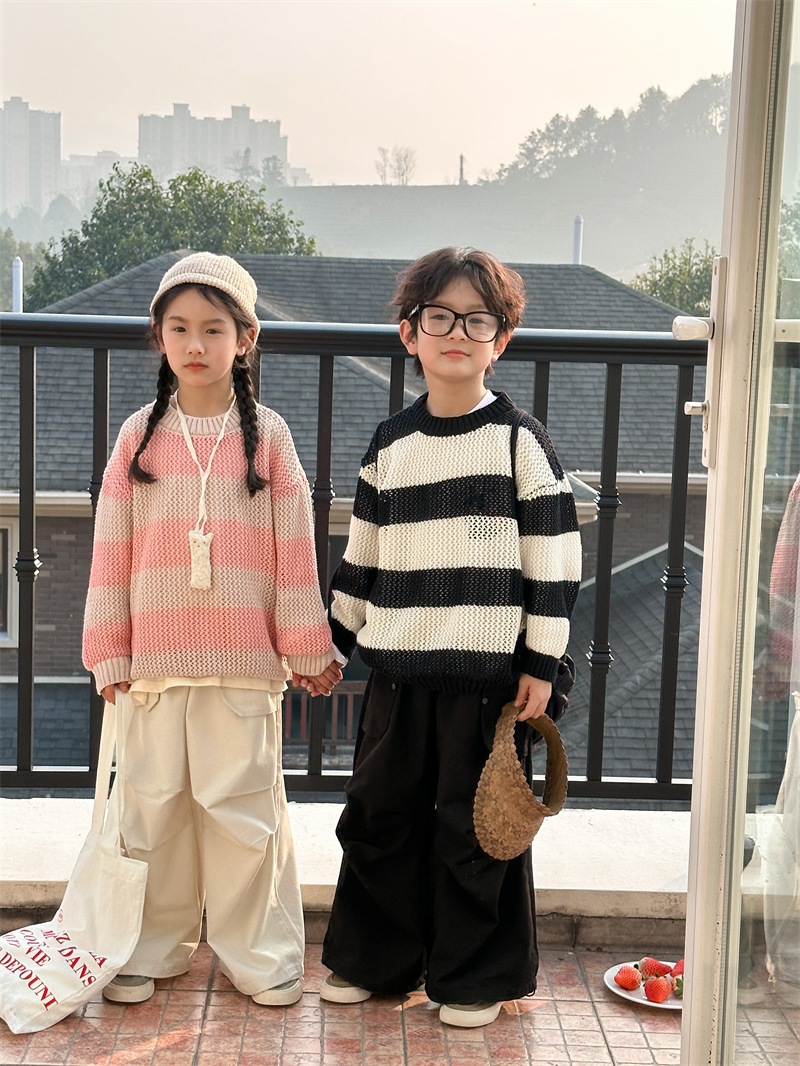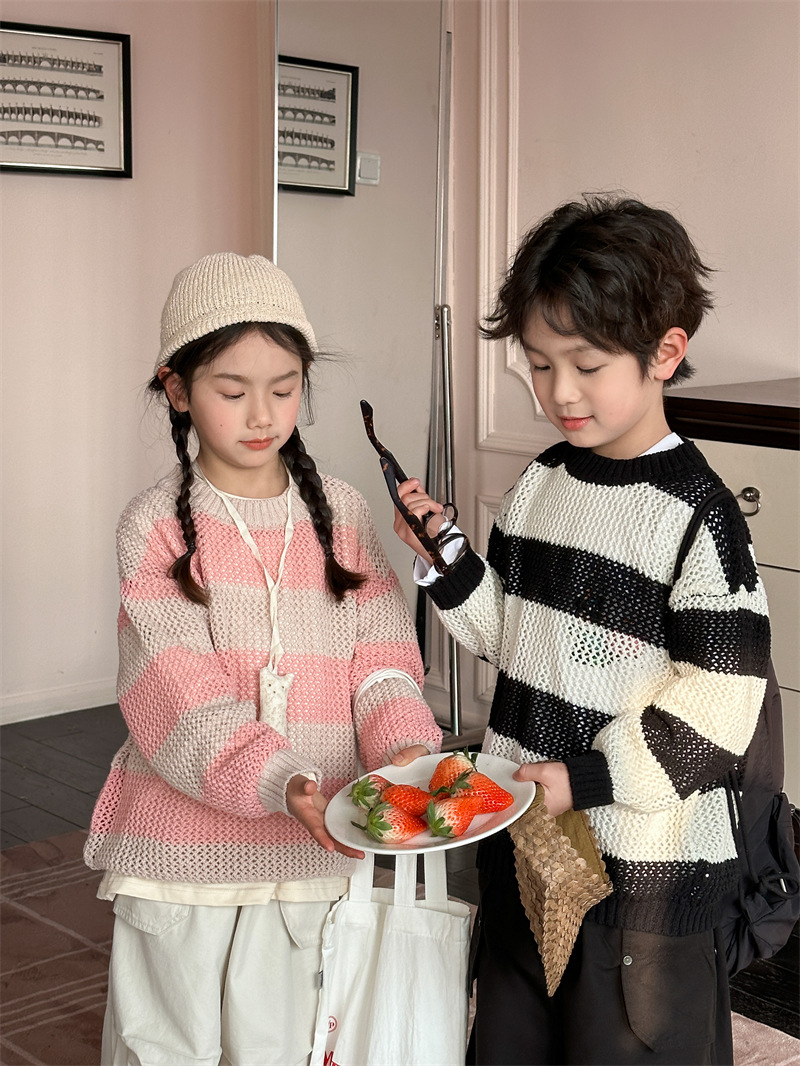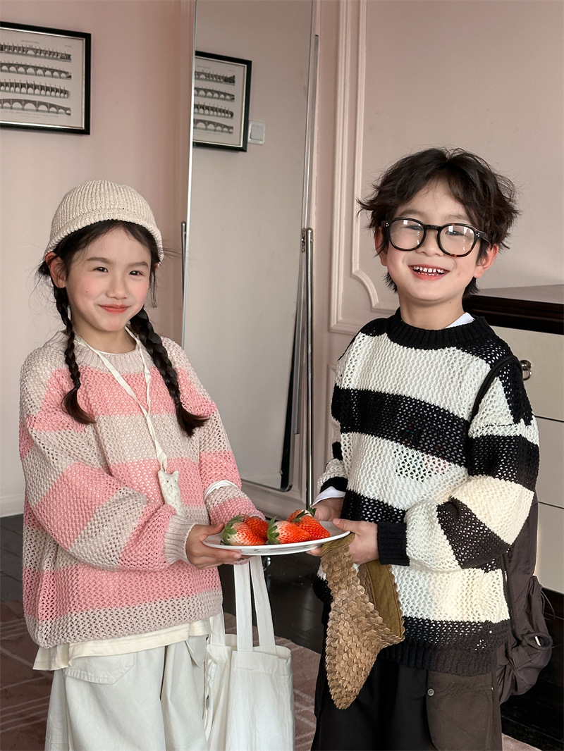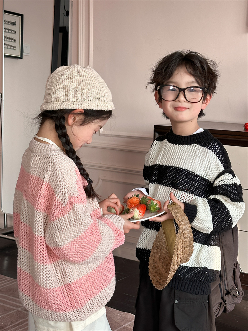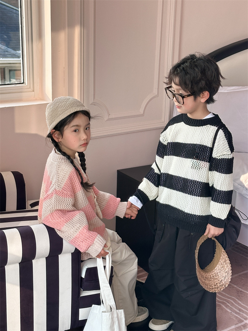 2024 spring new children s striped sweater Korean style boys and girls fashion pullover sweater all matching top wholesale